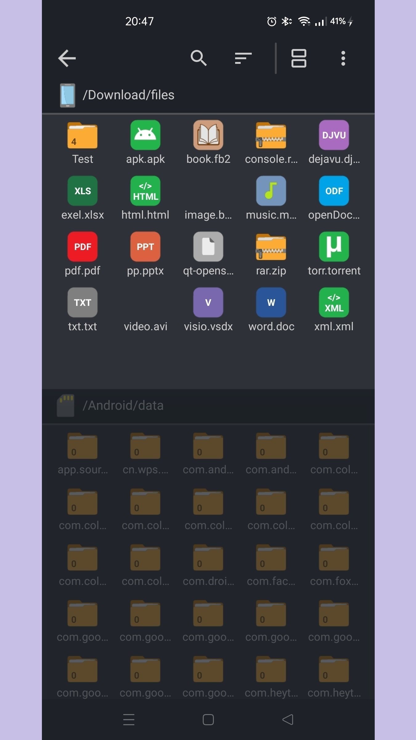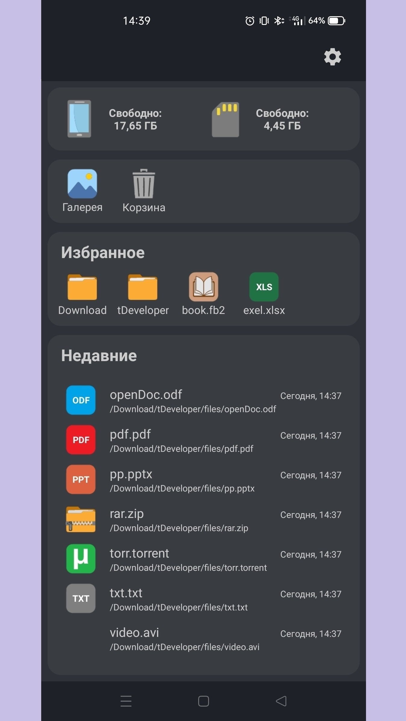 Быстрый и удобный проводник для управления папками и файлами во встроенной памяти и на SD-карте.