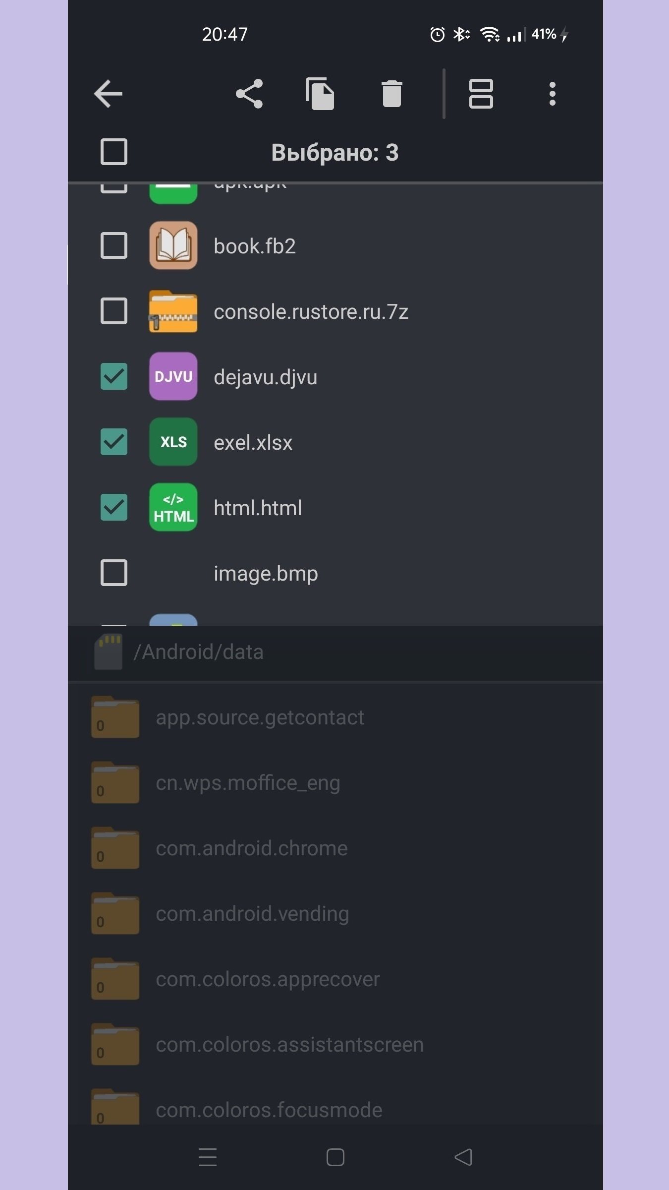 - Отправка файлов. Делитесь файлами через мессенджеры и соц. сети.