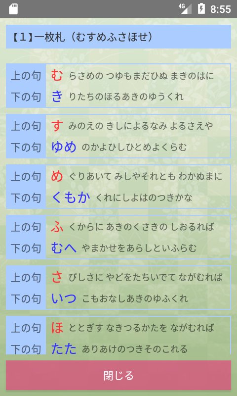 In "competition Carta (Hyakunin)", in order to win the game, you need to remember the phrase.