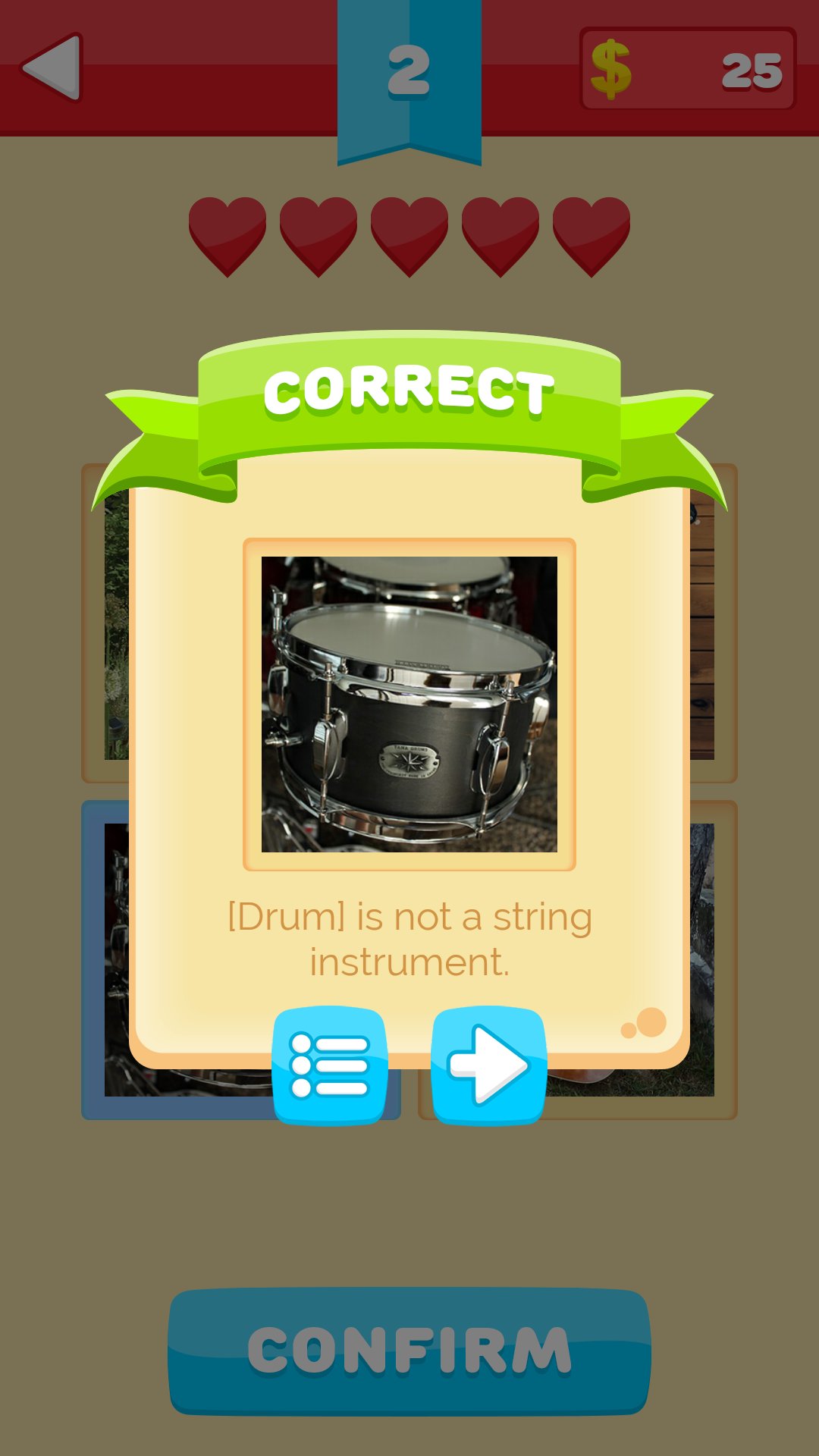4 Pics 1 Wrong is a simple trivia game with interesting concept. For each level a grid of four images is displayed. Three of the images have something in common, but the fourth one doesn't belong with them. You need to guess which of the images is different.