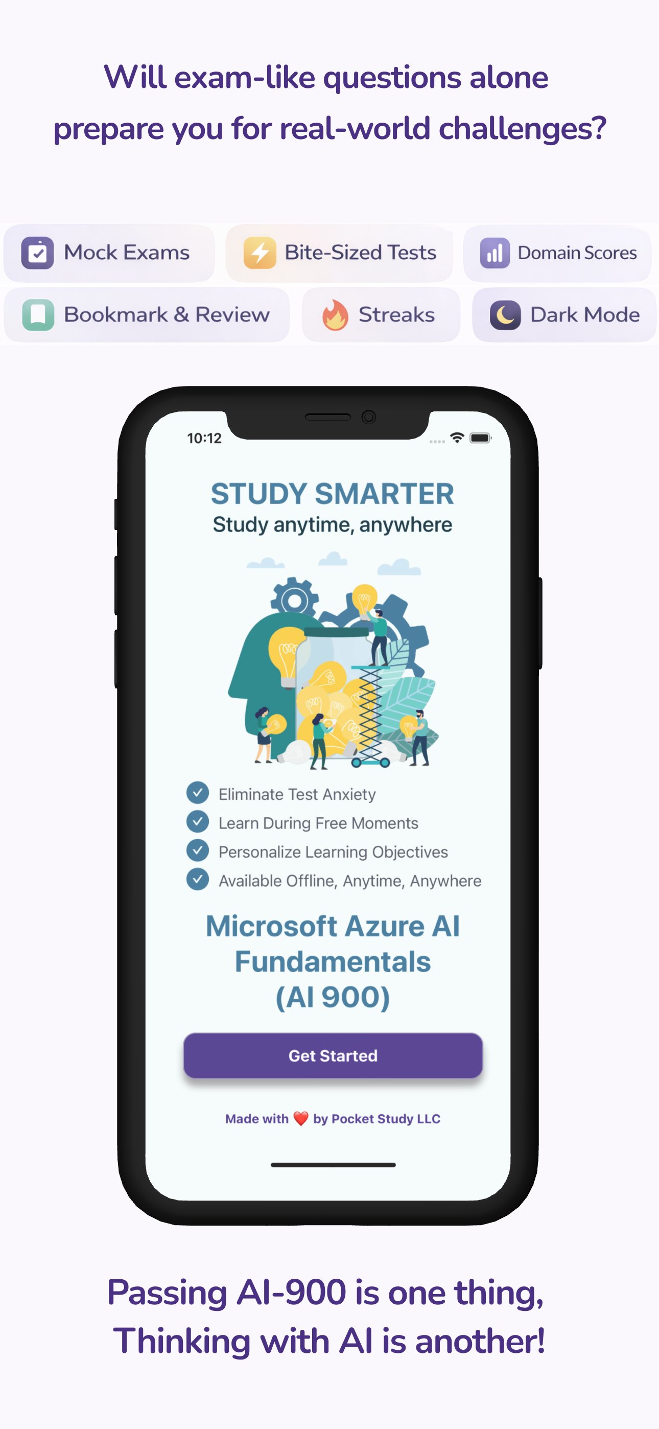 Unlike other AI-900 Pocket Prep or other AI-900 Exam Prep apps, the AI-900 Certification Prep app is developed by AI experts and follows the latest Microsoft exam objectives. It provides over 5000 expertly crafted AI-900 practice questions — one of the largest question banks available! In addition to conceptual questions, it includes several real-world scenario-based AI-900 practice questions covering all exam topics to help you excel in AI certification prep and master Azure AI Fundamentals.