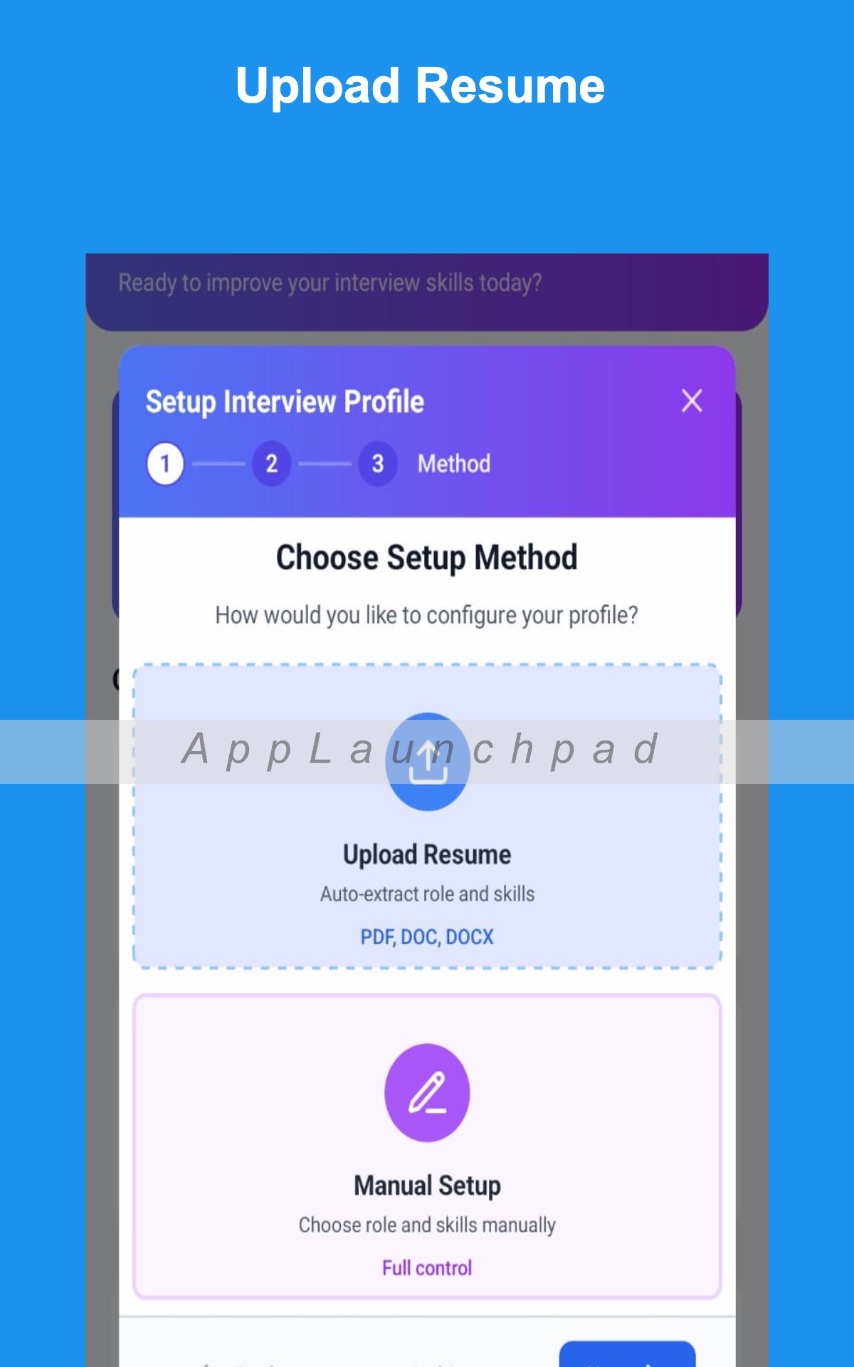 Upload your resume and let the AI analyze it to tailor questions based on your skills and experience. This feature helps you prepare for job-specific interviews with precision.