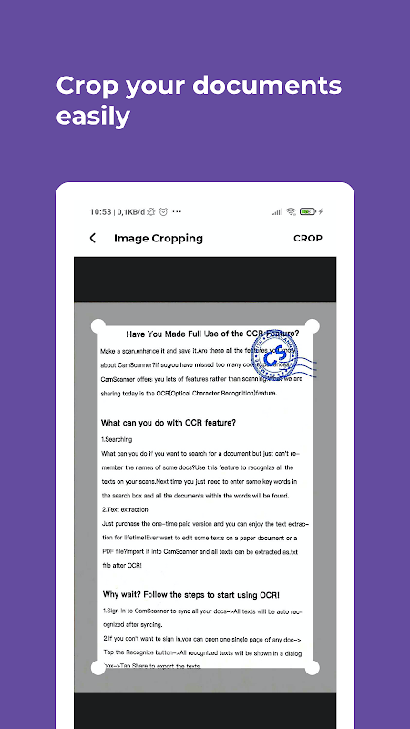 - Image cropper for propper document scanned