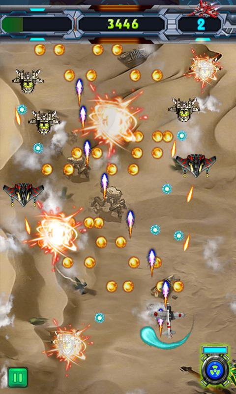 Aircraft War is coming!! you will be driving on Earth Lightning advanced fighters and other armed enemy in combat scenarios. Thunder fighter version of the classic strikes! This games all use high resolution images, the rhythm of the game exciting, and high picture frames 40FPS also ensures smooth gaming experience. The game has a kinds of cool styling enemy, different shapes barrage, you need to have superb people skills to complete the challenge, of course, the game's action feel it has been carefully designed to ensure that you can easily meet these difficult challenges. Blow strong sense of sound and dynamic soundtrack, plus high-definition picture quality, the show is bound to give you a magnificent aerial world. Join us and design your own barrage! Kill the enemies now!!!