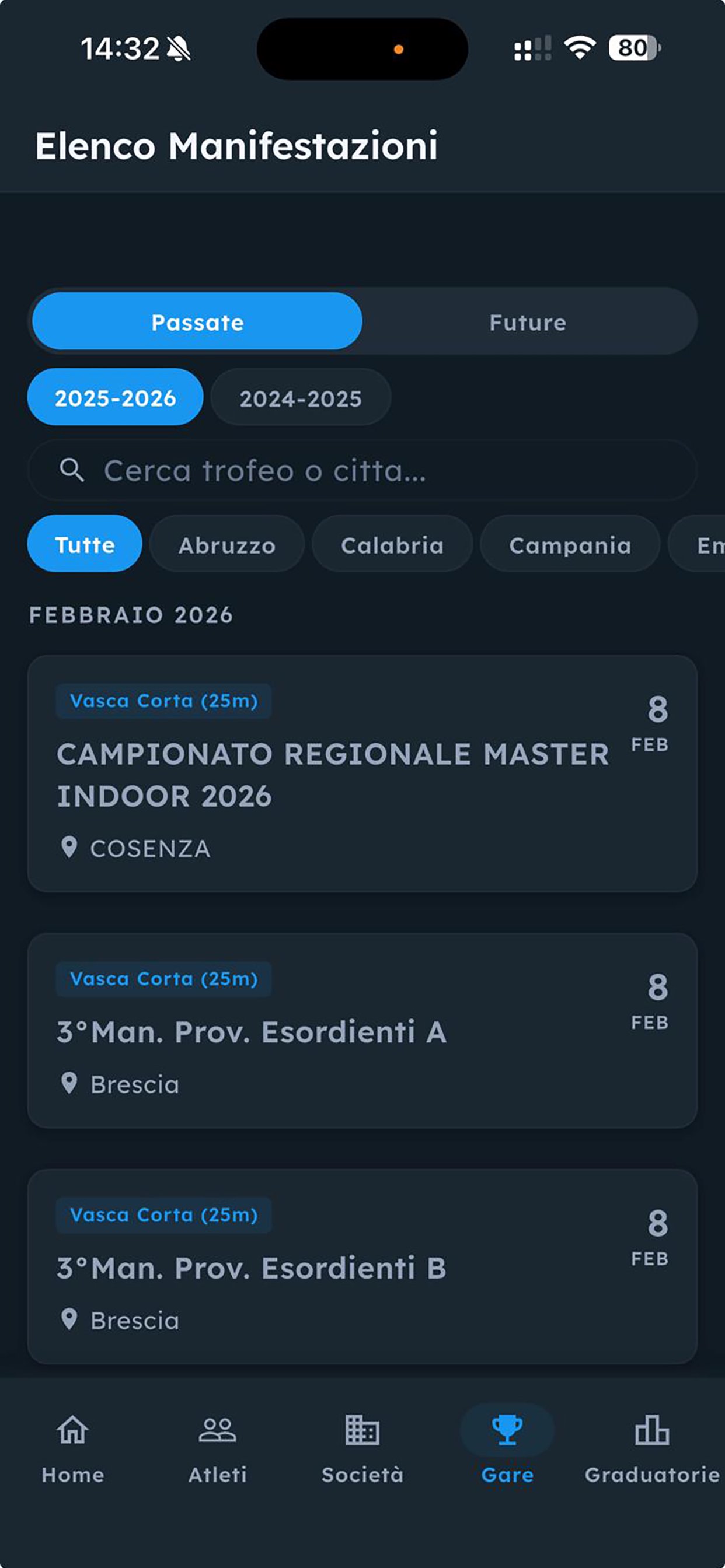 We will soon be adding the option to report missing races, errors, or suggestions online on the website www.aleswim.it.