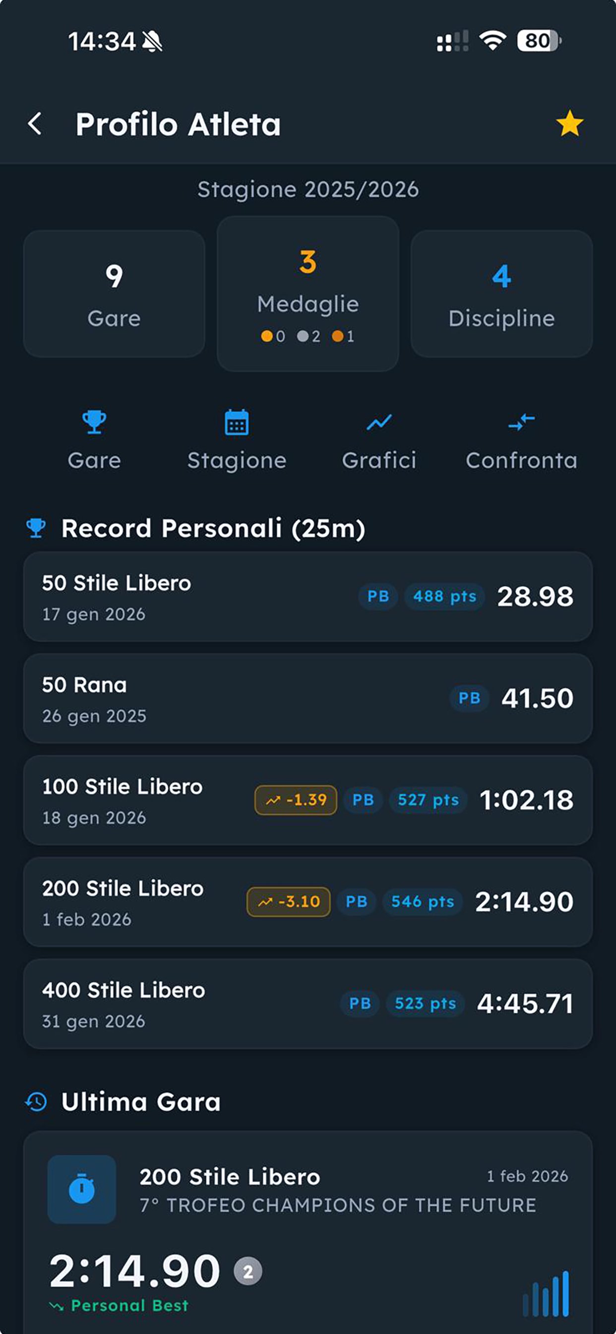 AlèSwim was created by those who live swimming every day. It is designed for athletes, coaches, clubs, and enthusiasts who want results and statistics always at their fingertips.