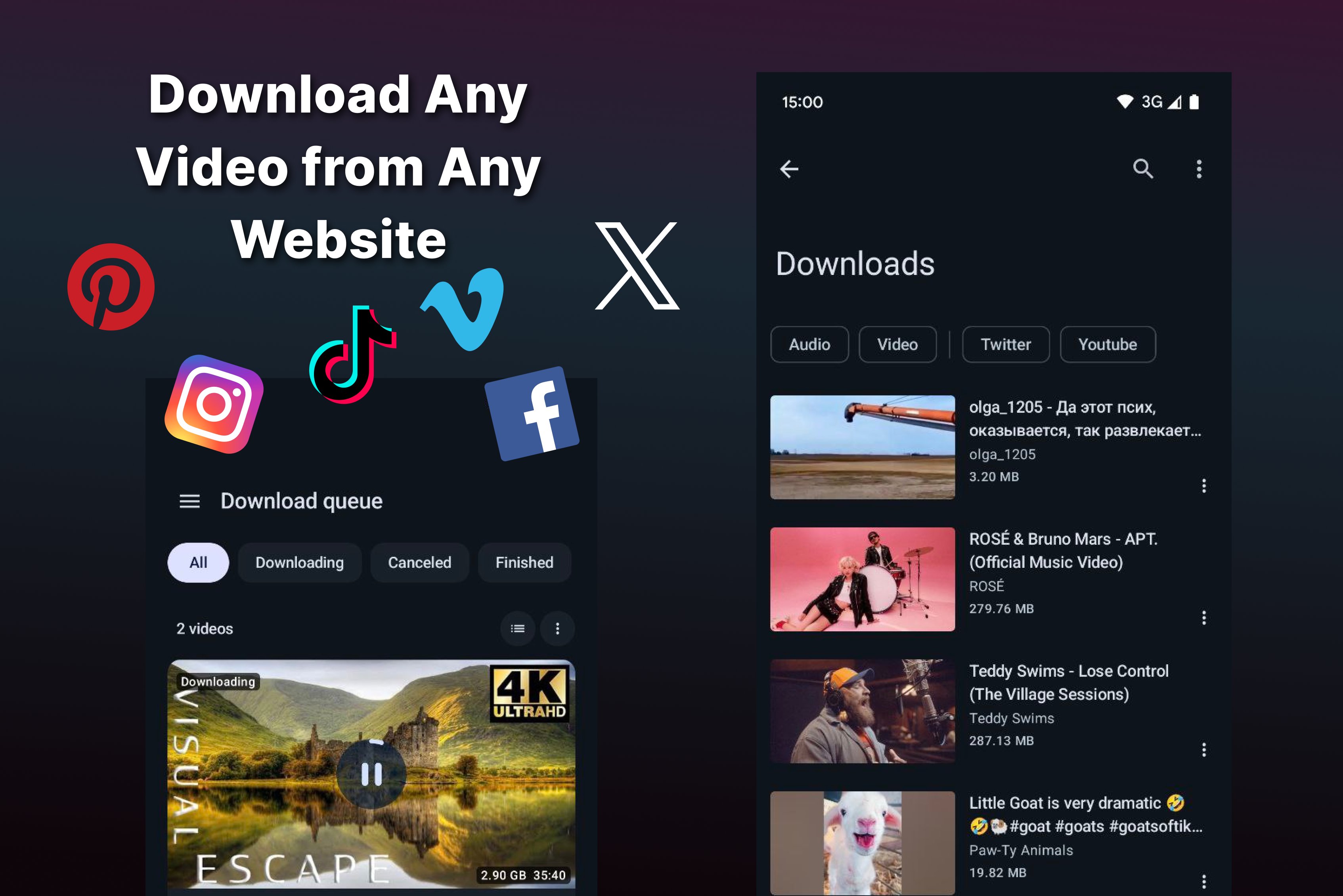 Download from Tik Tok, Facebook, Instagram, Twitter, Pinterest, FB, TikTok
