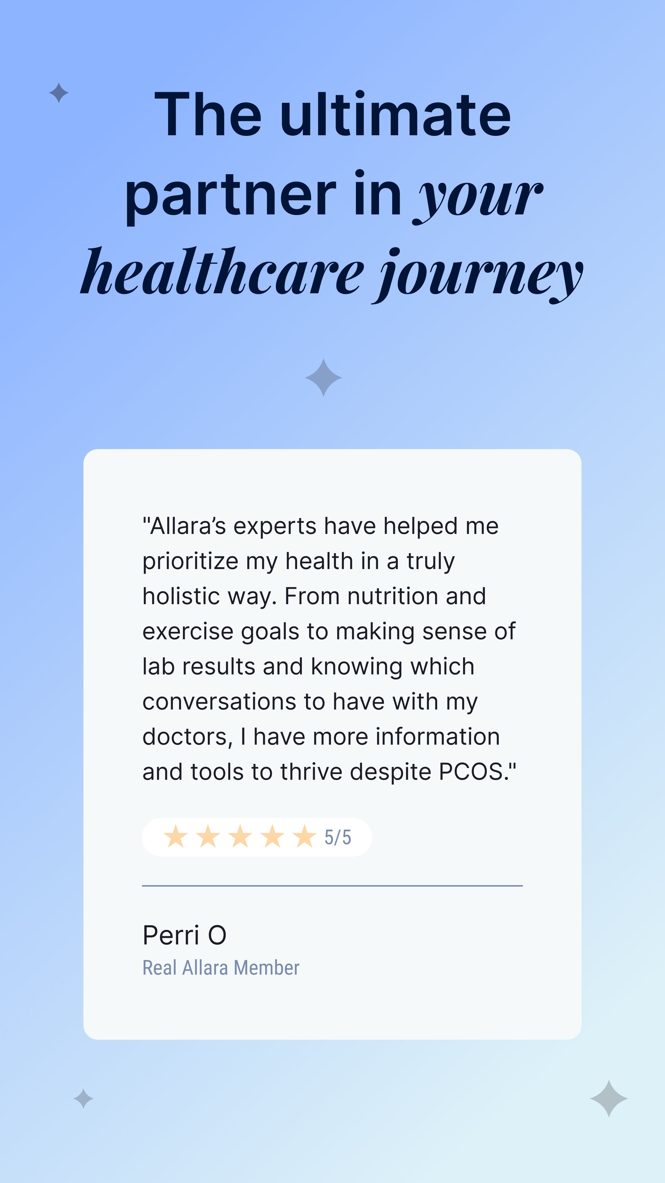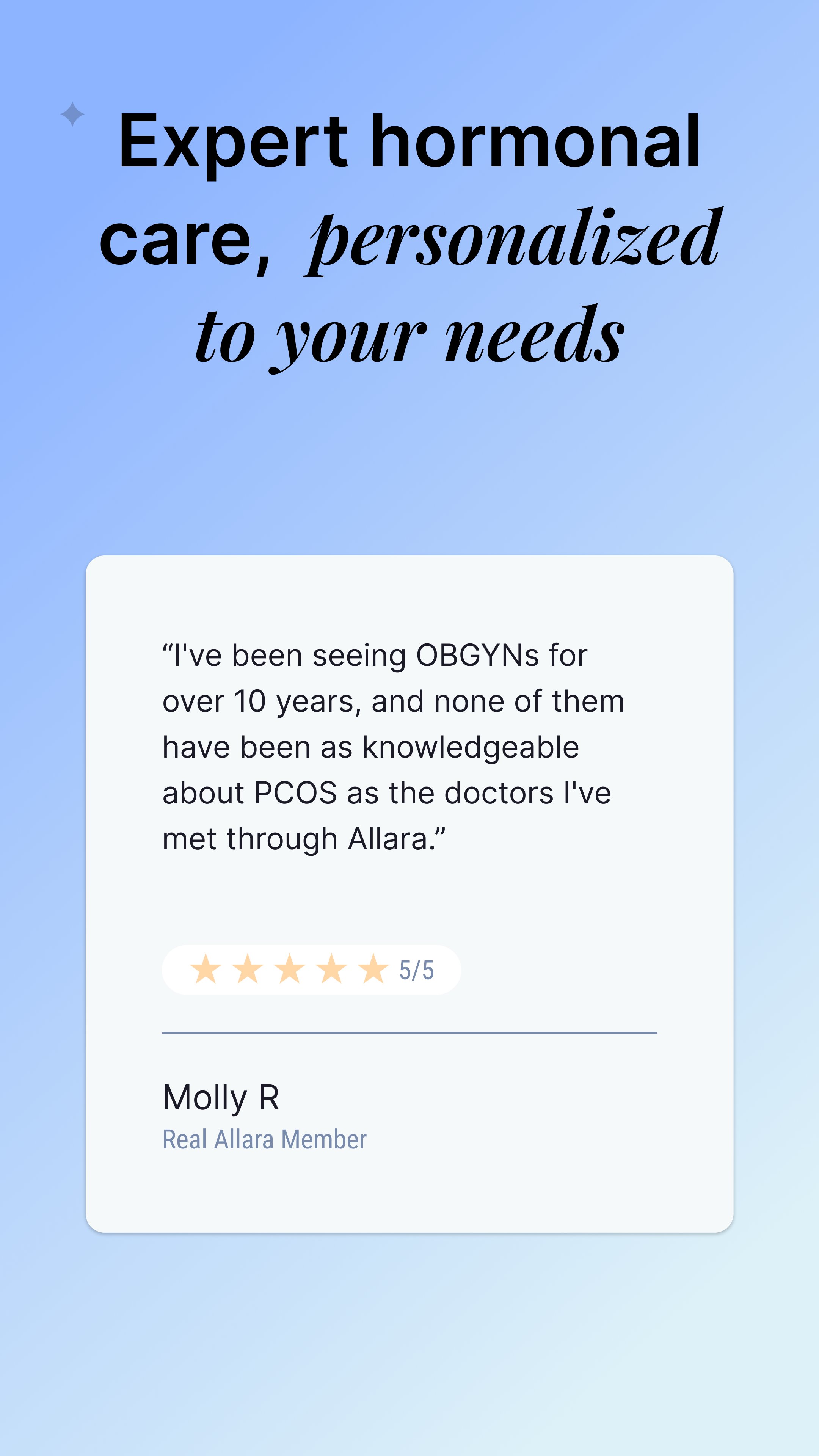 Allara provides comprehensive, compassion-first care to manage your hormonal health. We treat you as a whole person - not a set of symptoms.