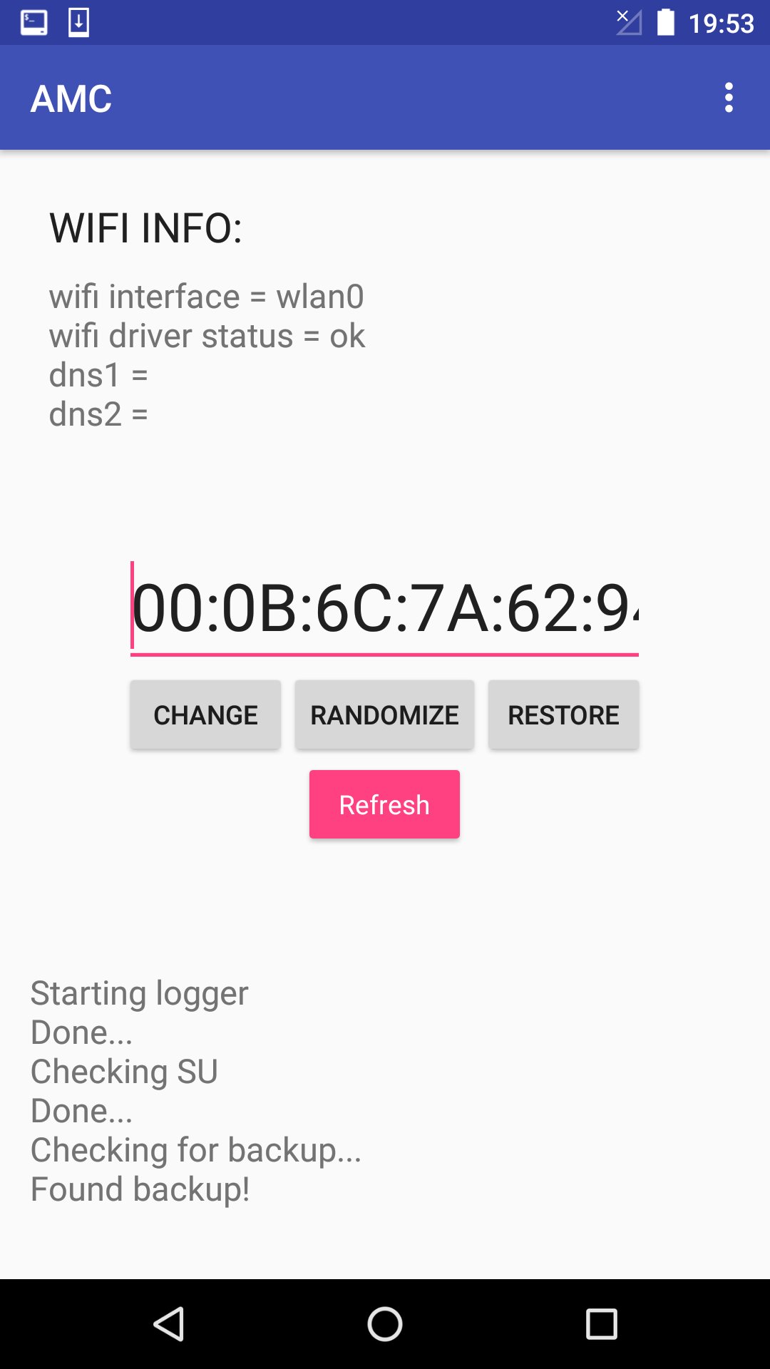 AMC(Advanced Mac changer) is a root application that can change your Android device's MAC address, based off nMAC by ViRb3.