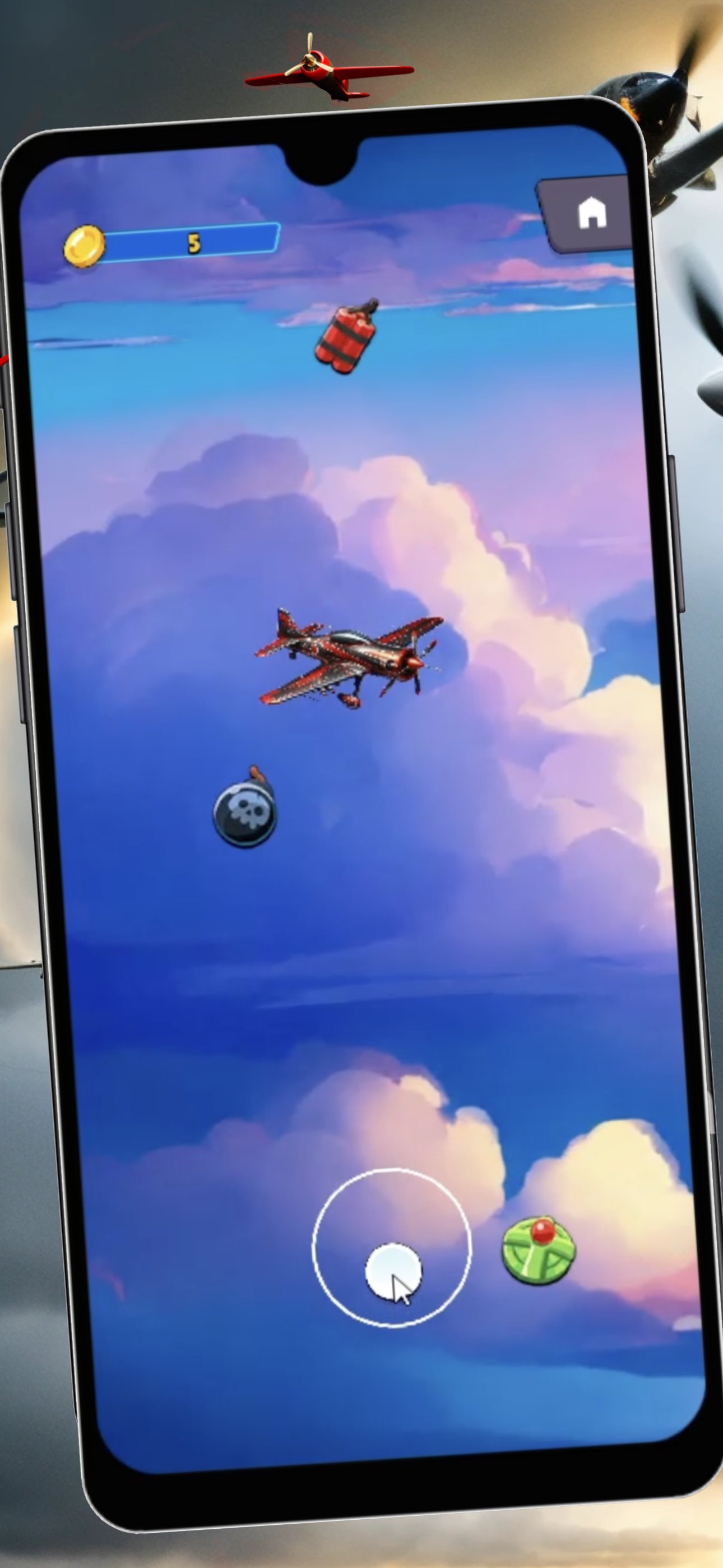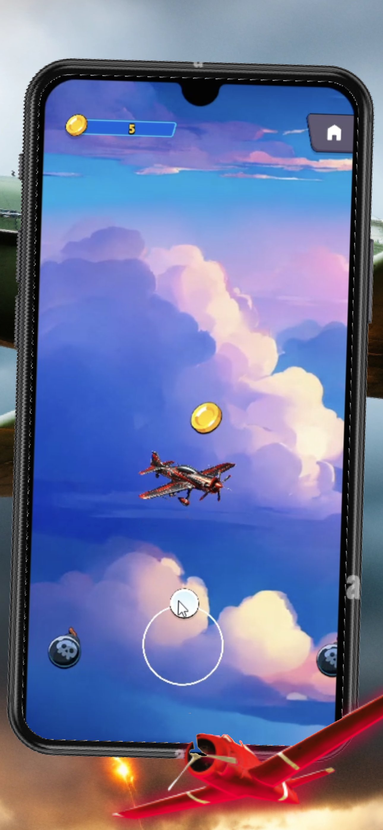 Thanks to simple controls, you can easily maneuver among obstacles and catch the coins you need. For a more interesting experience, control is done with an on-screen joystick and the aircraft's behavior is not linear, but reproduces the reaction to changing the angle of the rudder.