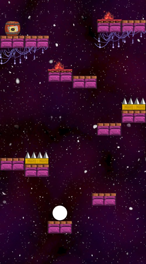 Tap on the left or right button to hit the ball upwards onto the bars available. Make sure you do not fall upon obstacles like the candles or you will have to try again.