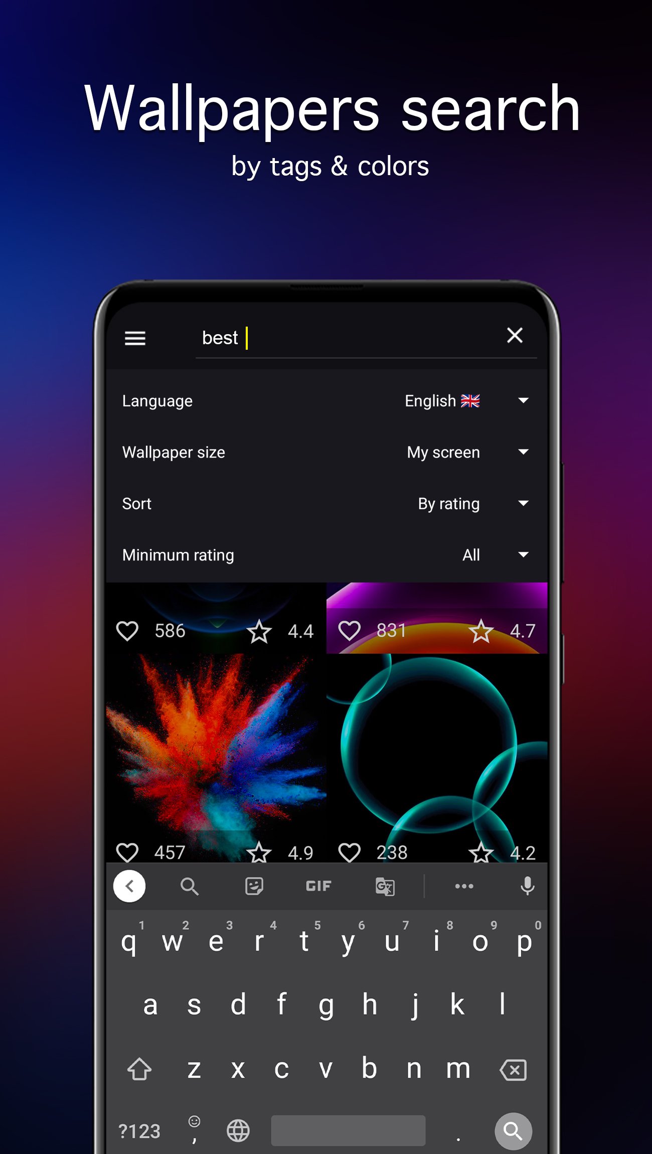 Minimalism, abstractions, textures, and gradients that match dark themes and look great on AMOLED/OLED screens.