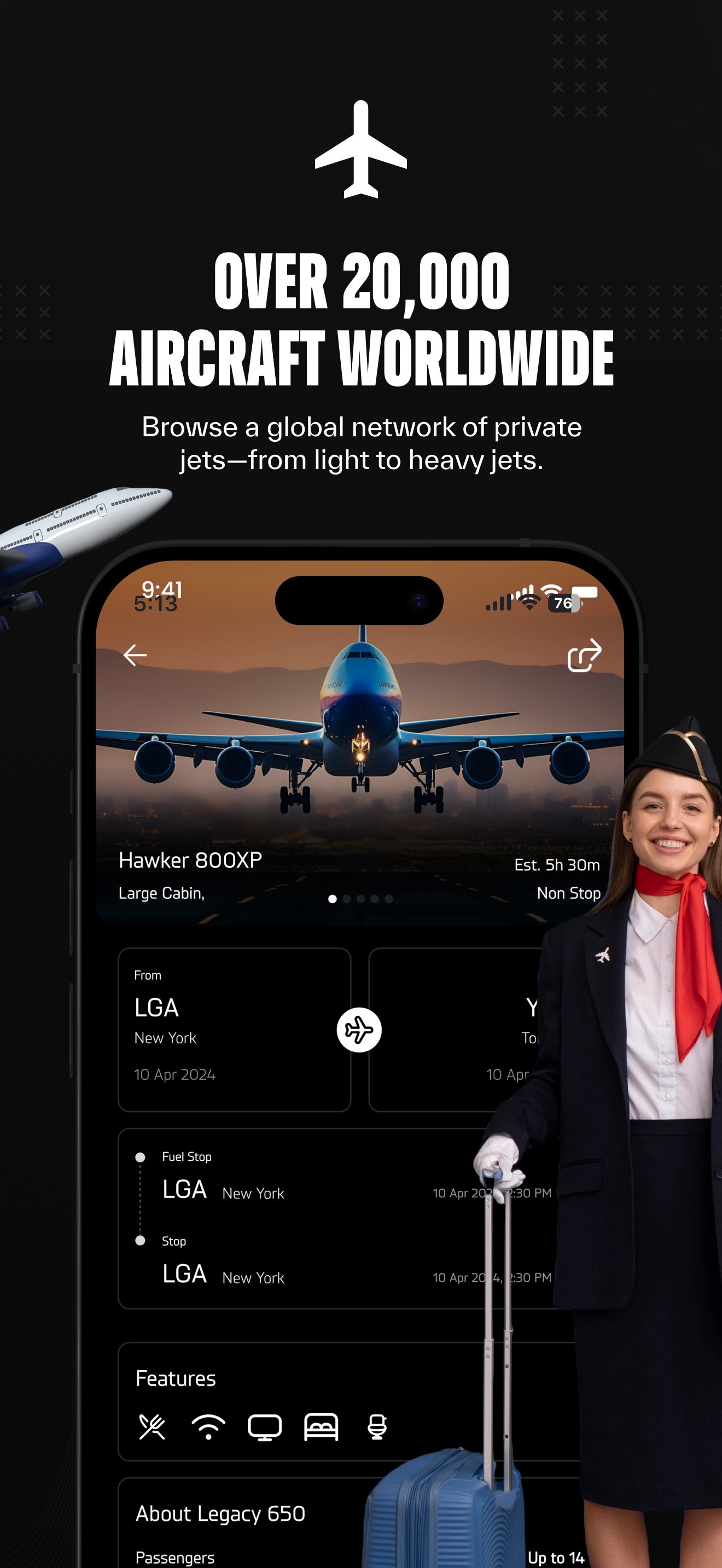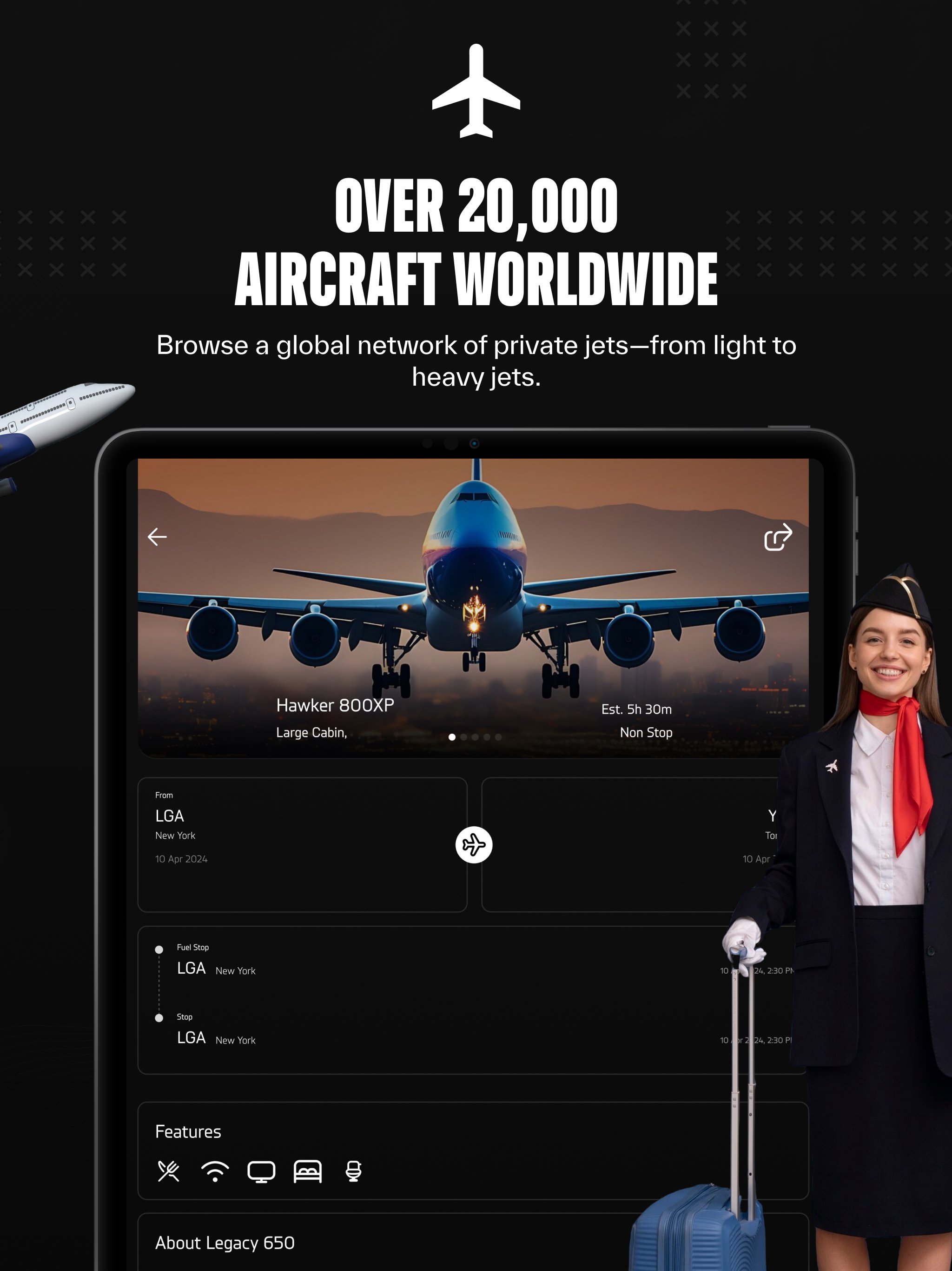 Global Fleet Access – Choose from thousands of aircraft, from light jets to ultra-long-range.