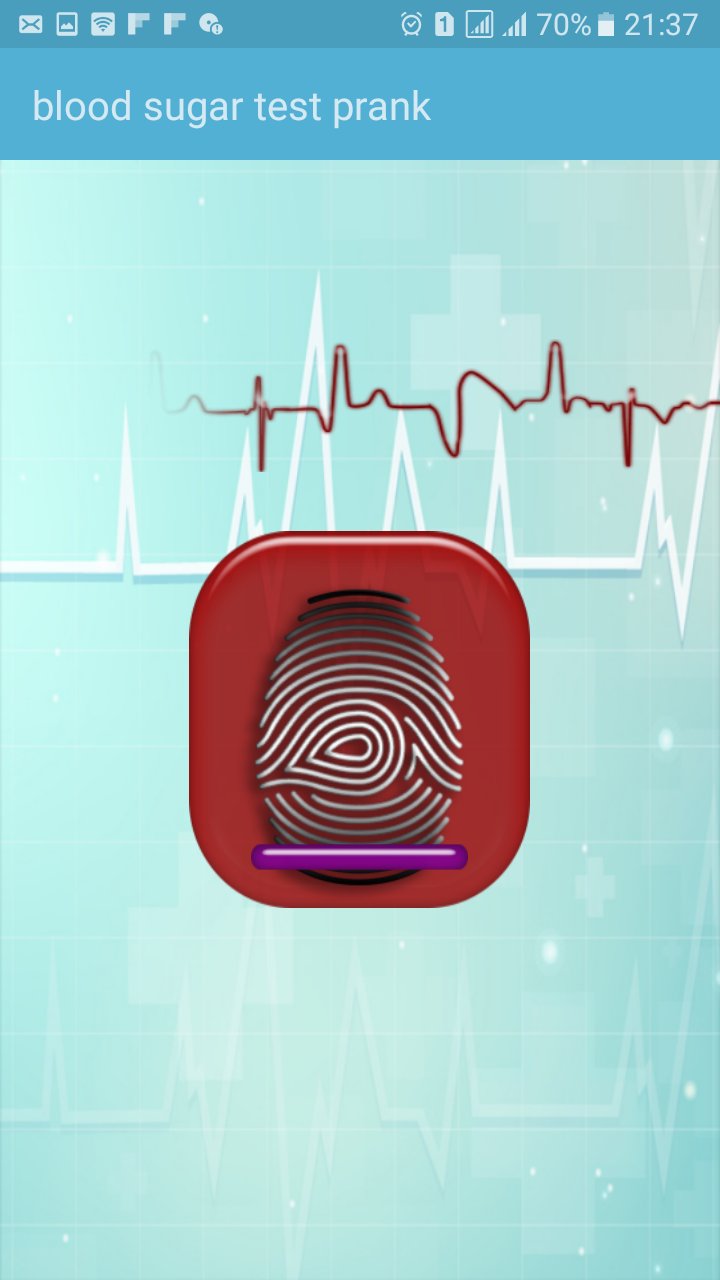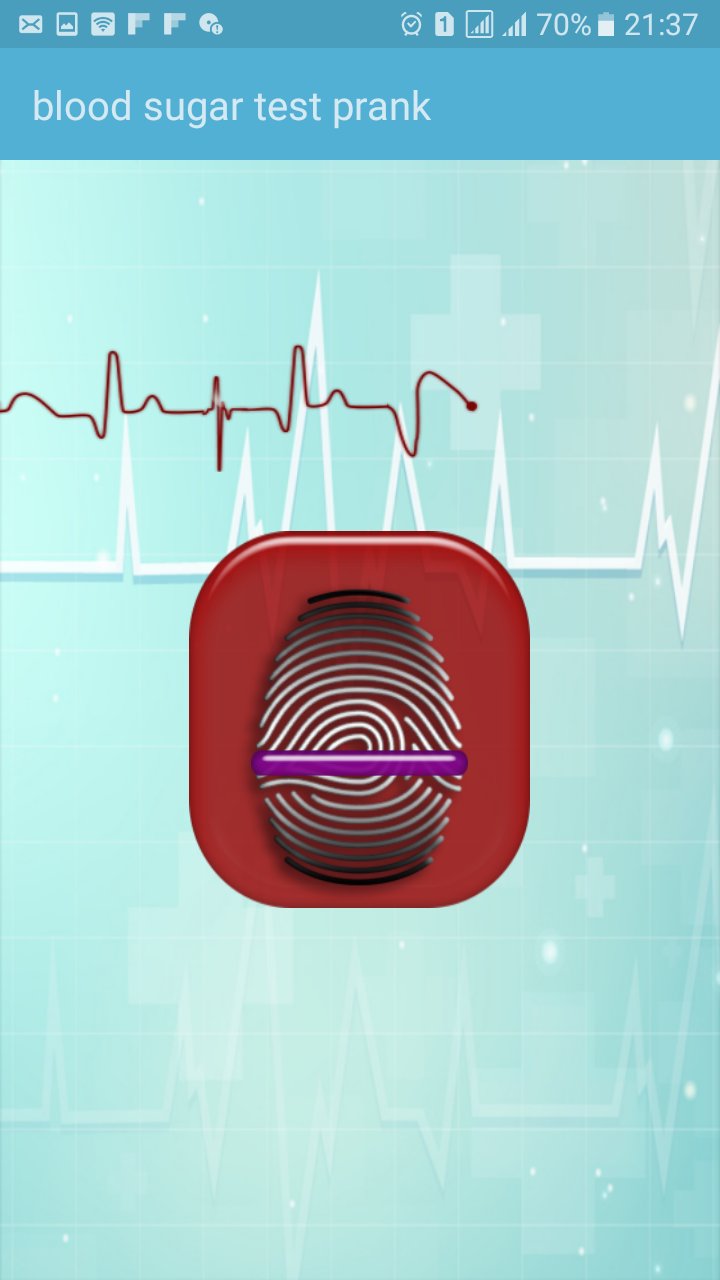 Open this blood sugar test prank. and click next button now you have a thumb pad. place your finger or thumb on fingerprint scanner and wait till animation complete. after completing the scanning this sugar monitor app calculating your blood sugar level range for diabetes. now this diabetes sugar blood tester show a value on blood sugar scanner machine.