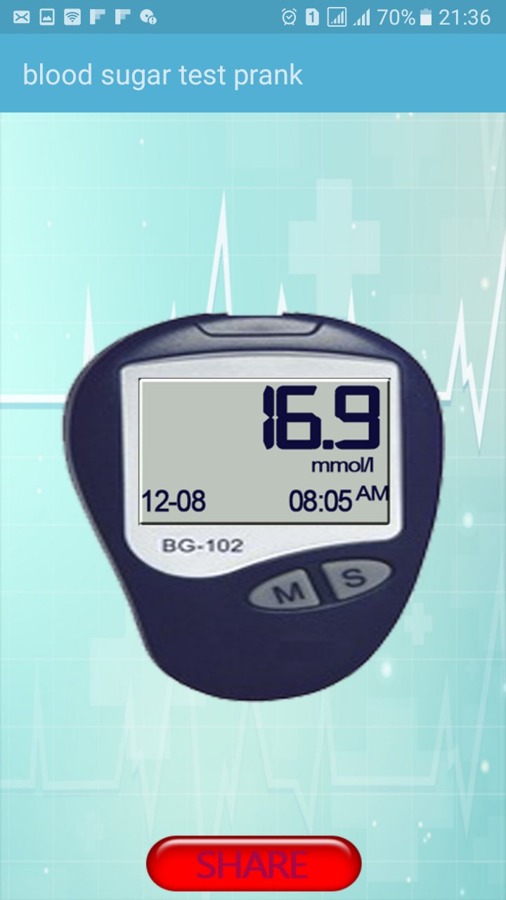 This "Blood Sugar Test Prank" application is for fun and entertainment. This is a prank application and its generate simulate result of blood sugar. Please Don't take these Result seriously.