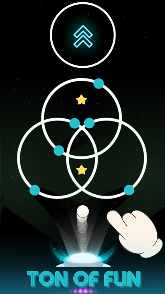 Every tap pushes the ball up. Stop tapping, and it falls. Between you and the next level are rotating triangles, spinning stars, intersecting circles, and moving lines. Each level is hand-designed with a different neon pattern you need to read before you move. The controls are simple. The levels are not.