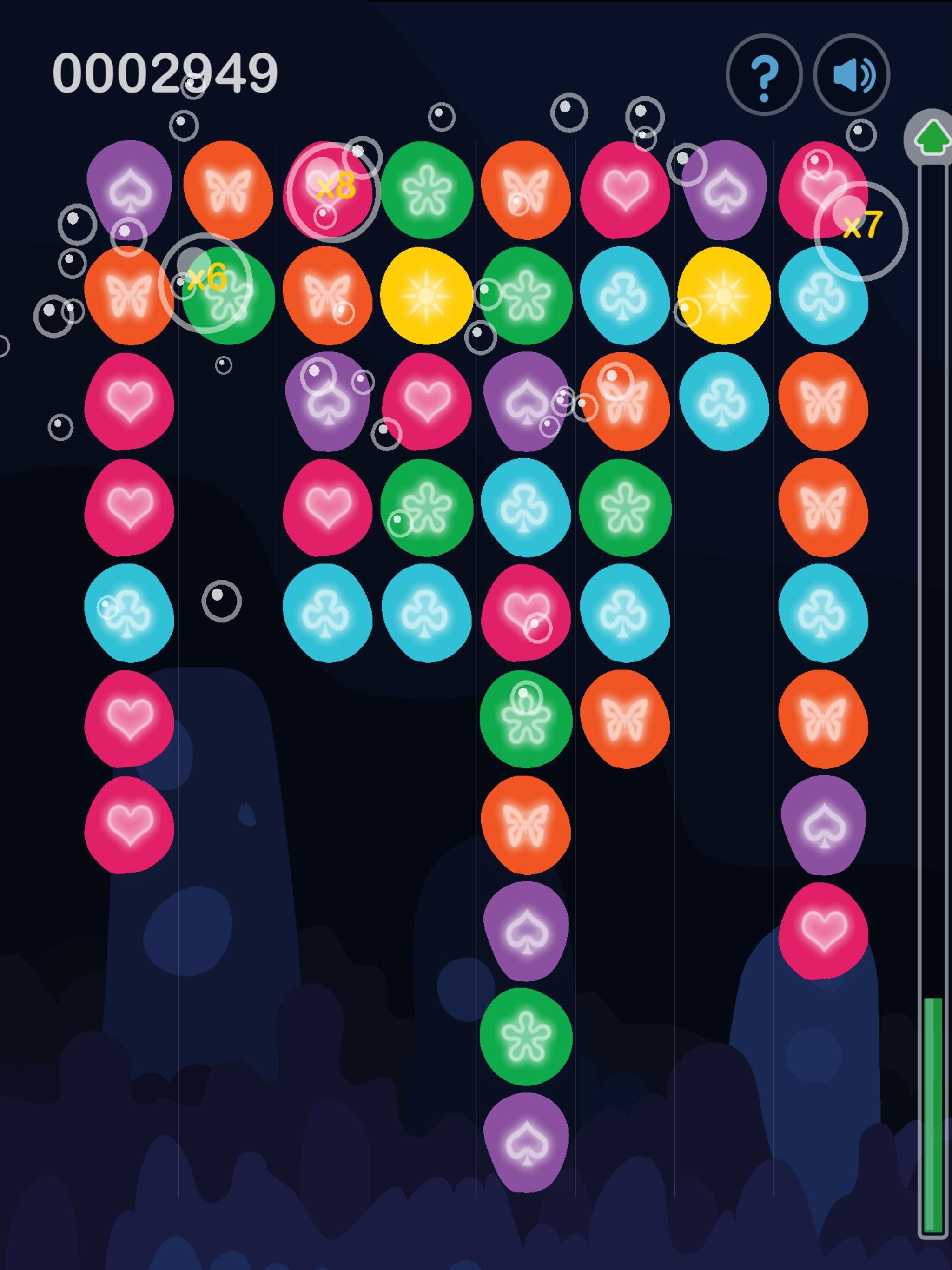 Match three or more bubbles any direction to earn points and to get more life.