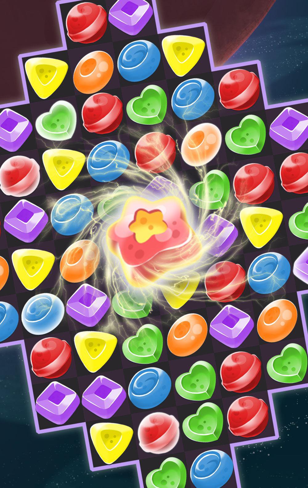 Matching candy in space is fun and addictive so you better download for free today and start the adventure! You need to make lines of 3 sweet items to create blast win points. Switch and crush your way through hundreds of exciting cosmic levels and collect all the candy.