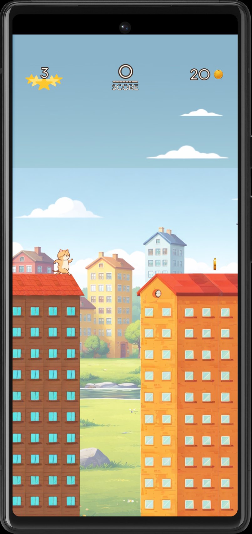 Tap the screen to make the cat jump from one building rooftop to another. Each jump requires careful timing to land safely and continue moving forward. Along the way, collect coins to increase your score and challenge yourself to go farther each time.