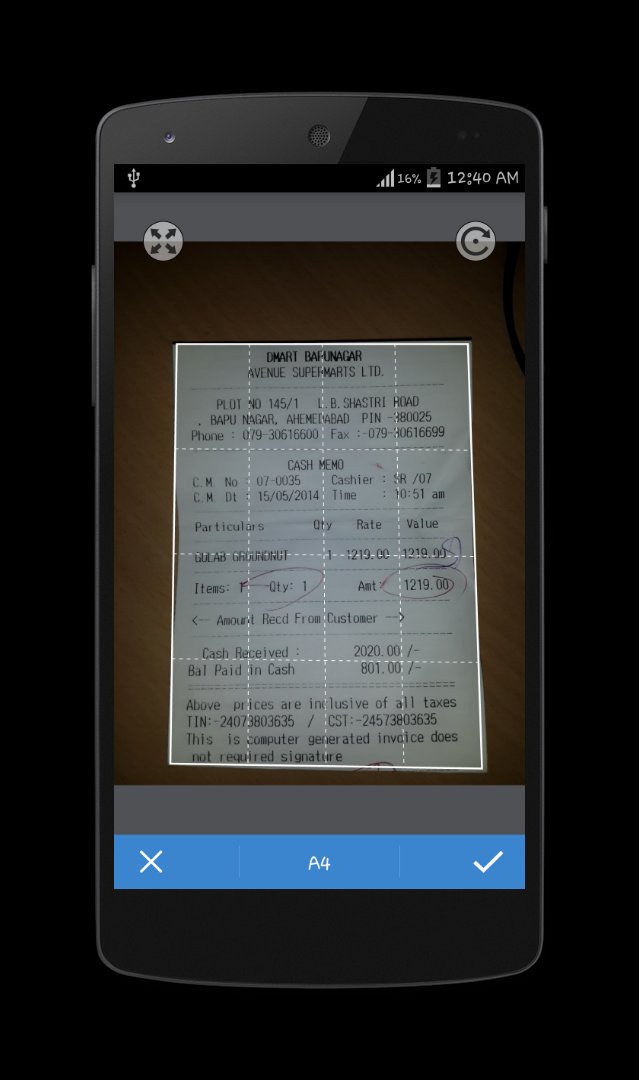 Cam Scan is application for scanning your document. Its provide below listed features.