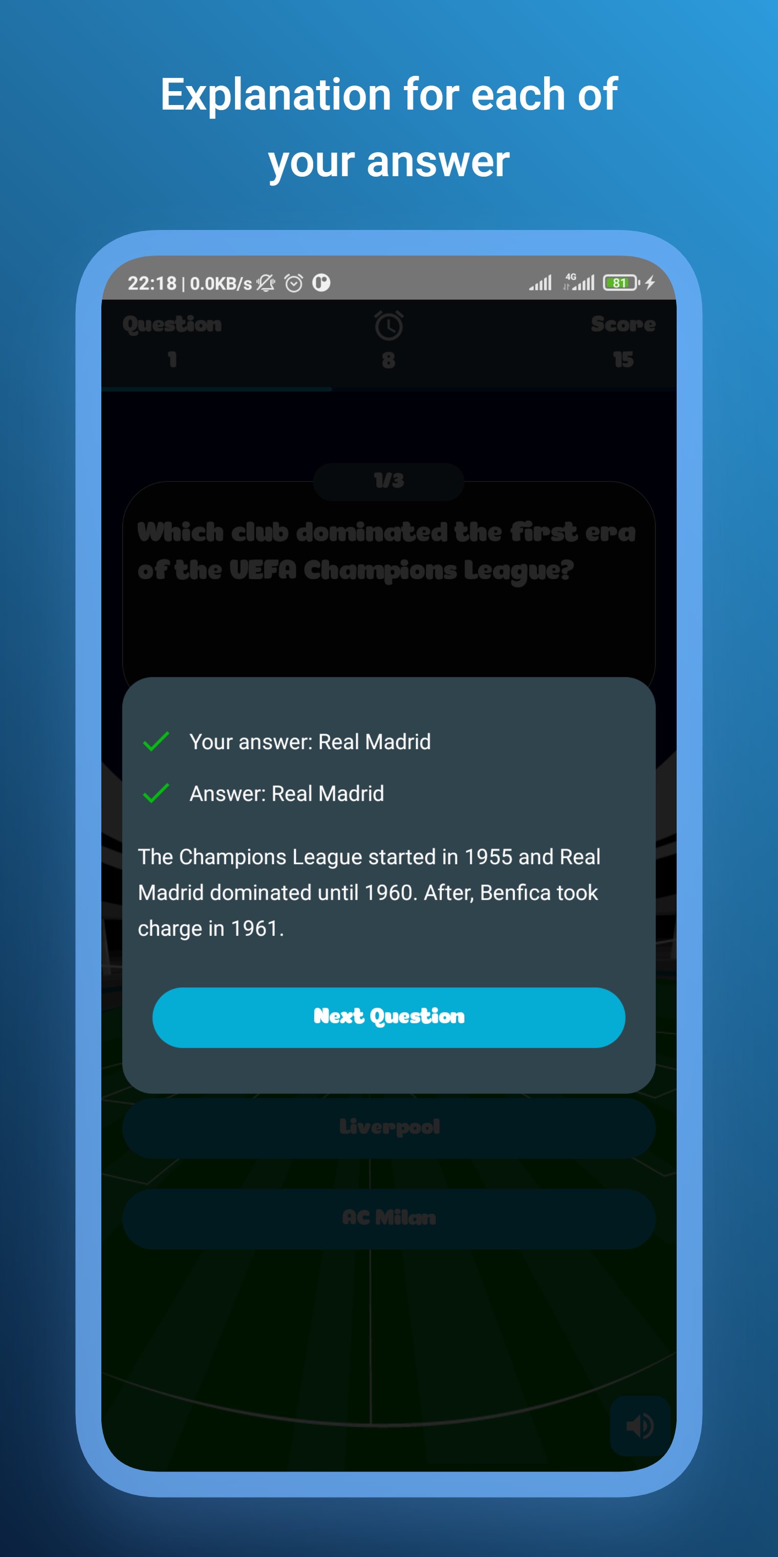 - Quiz the tournaments stadium. You can get to know stadiums