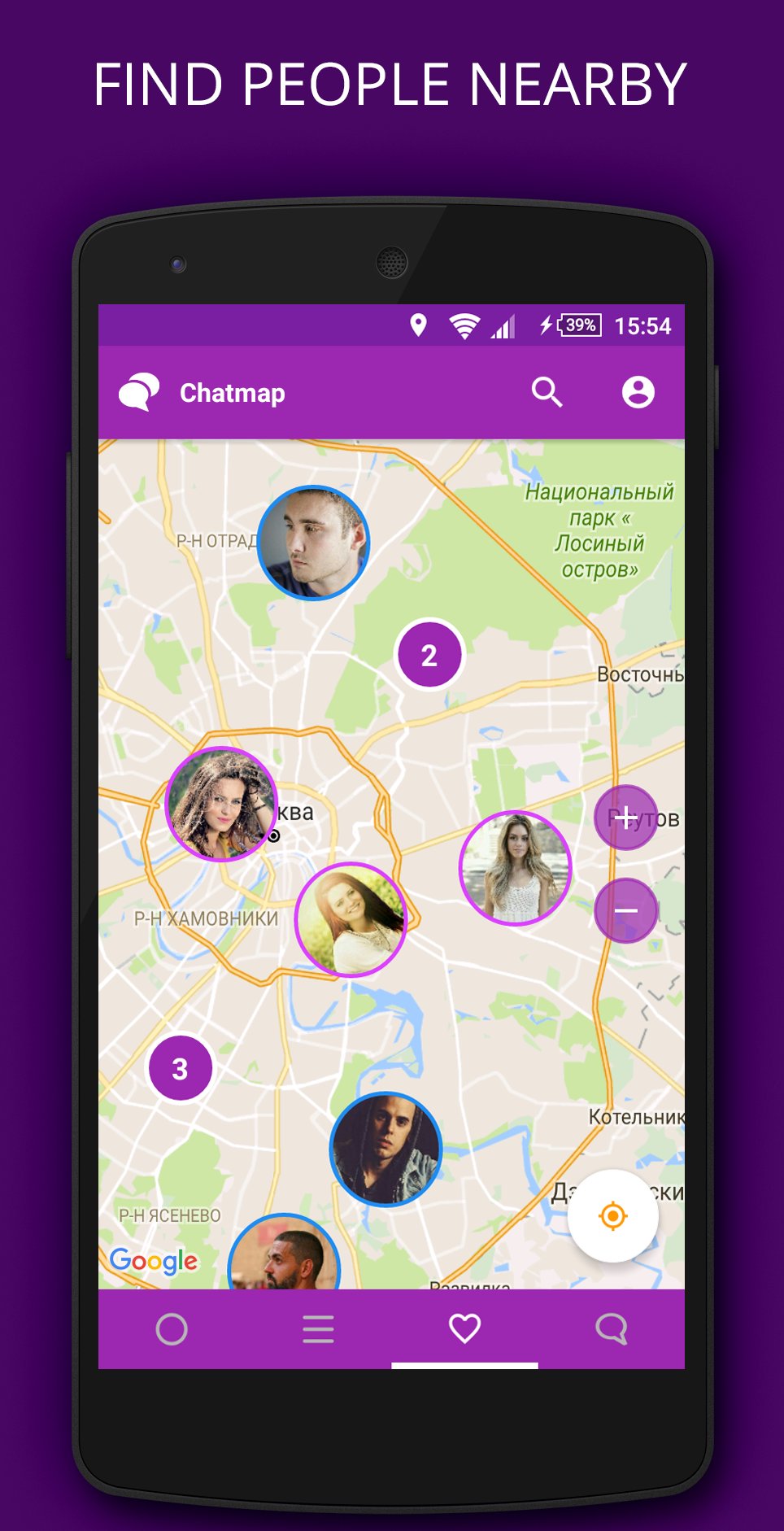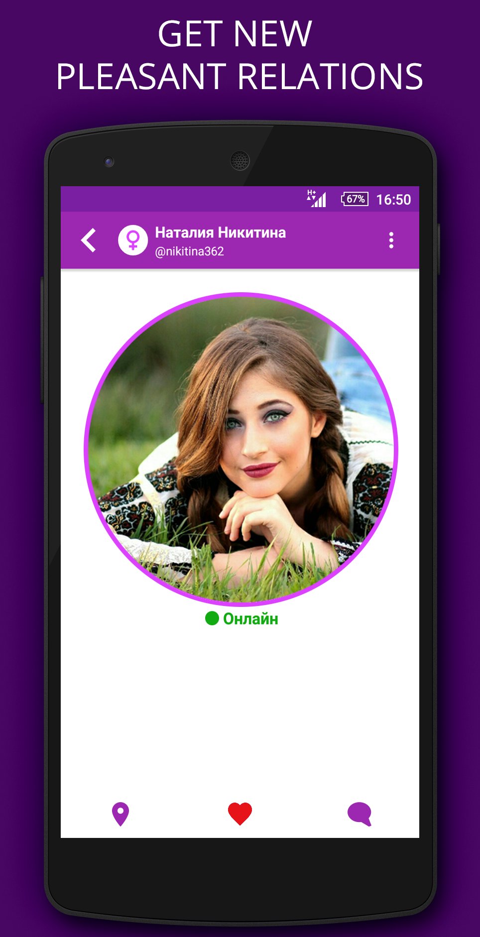 To start your adventure you just should open application, set up your best photo as an avatar and start searching for some new relations using map or list.