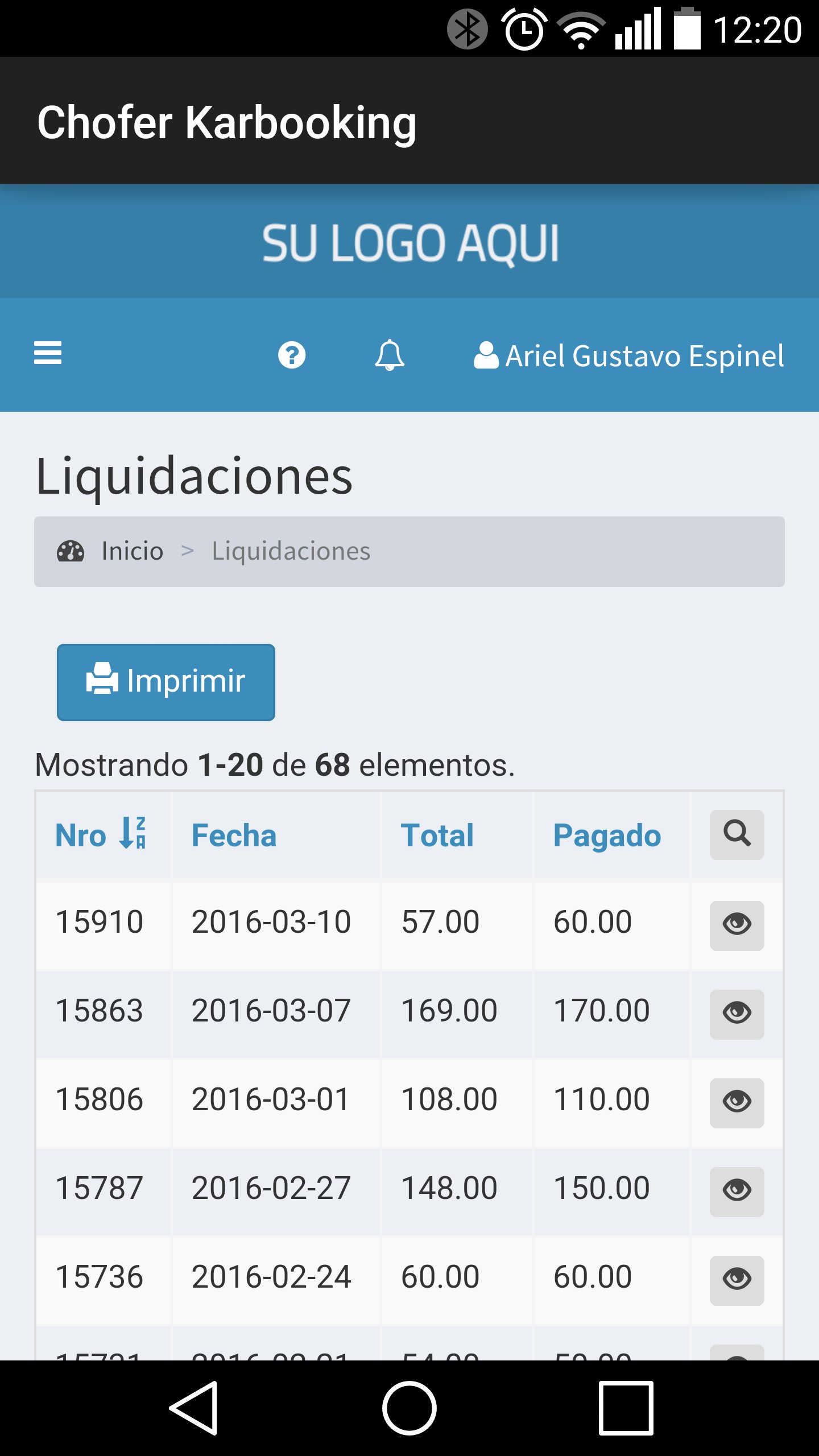Chofer Karbooking es la aplicación Android para choferes de agencias que utilizan karbooking.com. Le permite al chofer recibir una alerta instantánea con los datos del viaje, y opcionalmente enviar su ubicación GPS durante el mismo para ser consultada desde la aplicación web. Además permite al chofer gestionar sus datos, ver el historial de viajes, liquidaciones, etc.
