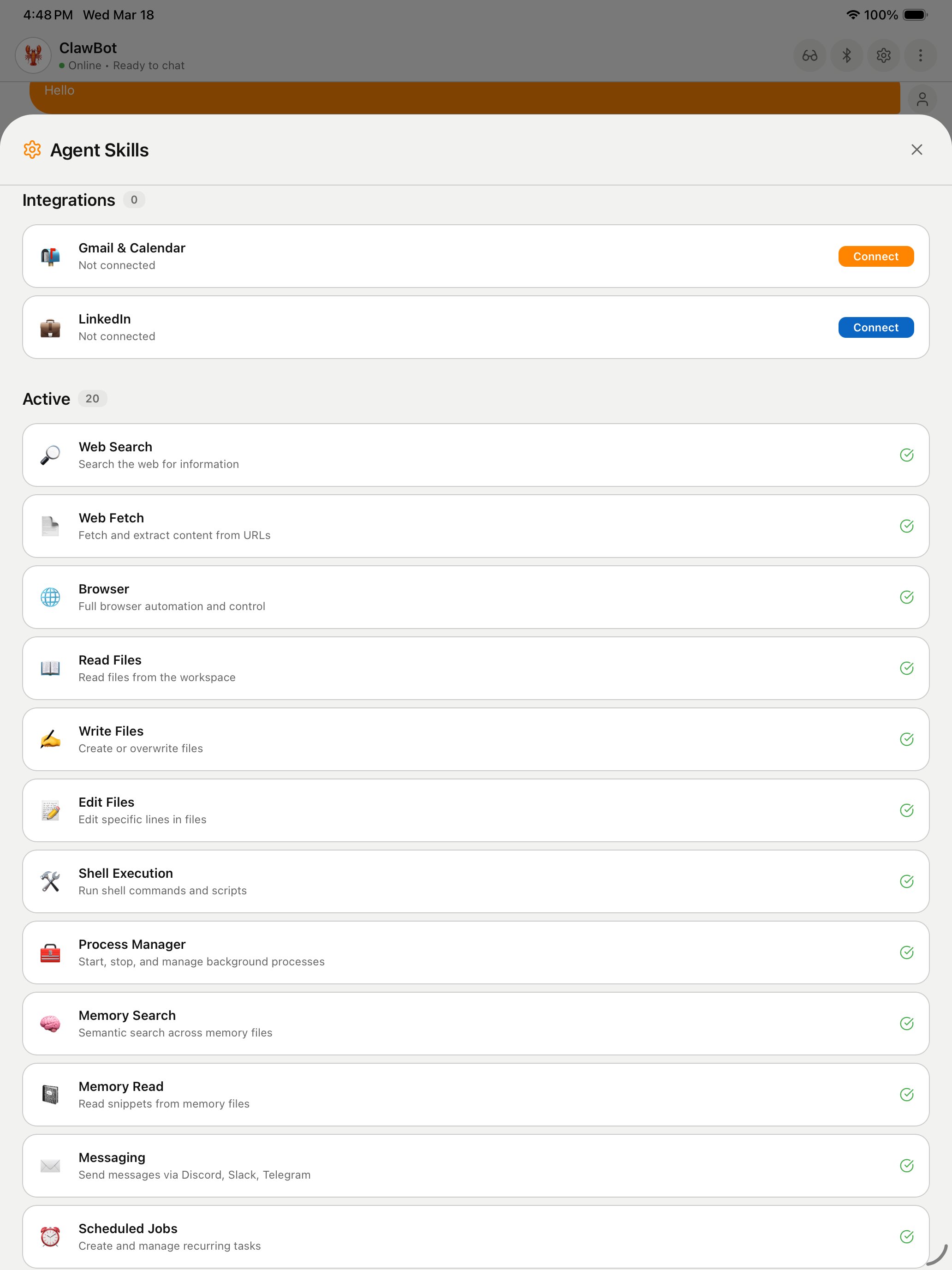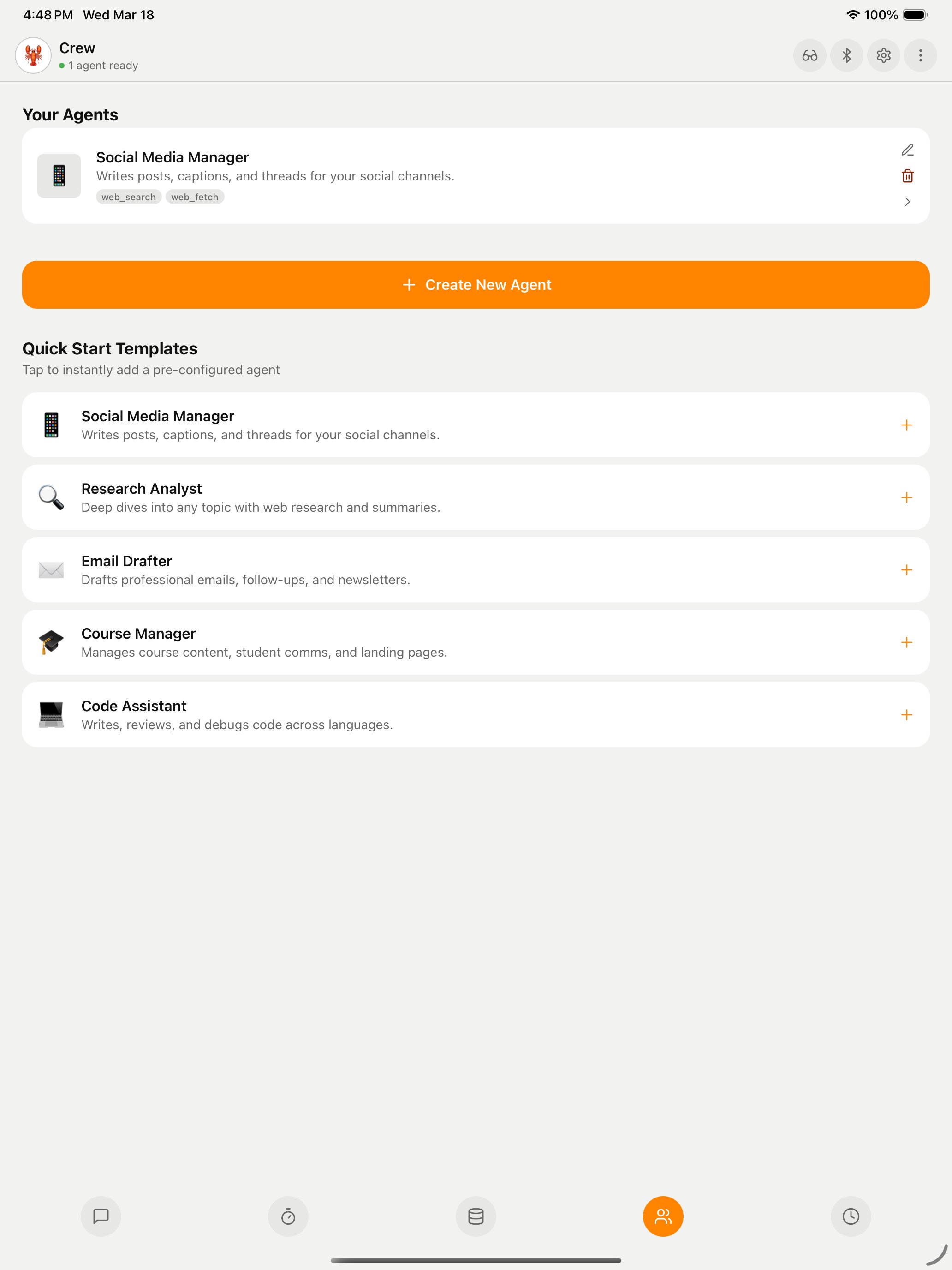 ClawBot gives you a personal AI assistant that actually knows you — your schedule, your preferences, your life. Sign in with Google, and in seconds you have an always-on AI that checks your email, manages your calendar, posts to social media, and reaches out proactively when something matters. Built on OpenClaw (open-source), no servers or technical setup needed. Plus a Crew tab where you build a team of AI agents — research, writing, scheduling — all working for you from your pocket. Your data stays yours.