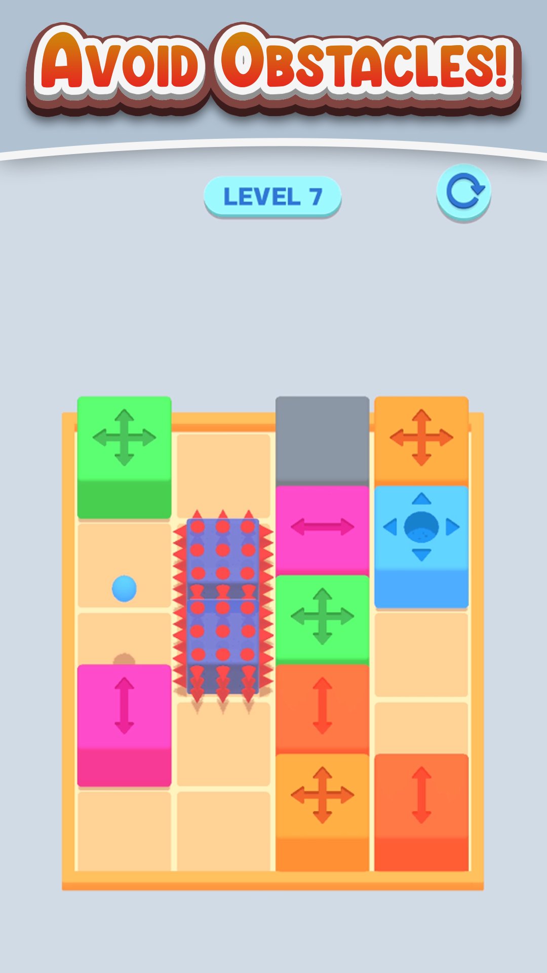 The color scheme plays a crucial role in the game's mechanics. Matching blocks of the same color triggers their disappearance, allowing you to clear a path for the remaining blocks. This color-based interaction adds a strategic element to the gameplay, requiring players to carefully consider not only the direction of movement but also the colors of the blocks. It's a delicate balance that adds depth to the puzzles, making each level a satisfying challenge to conquer.