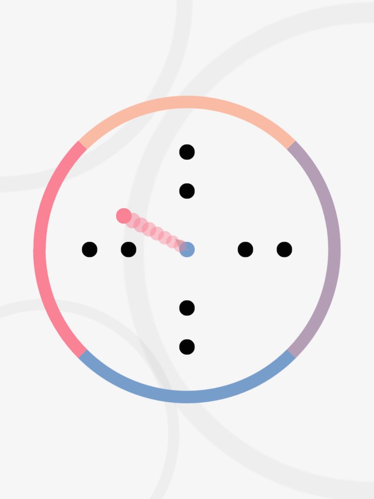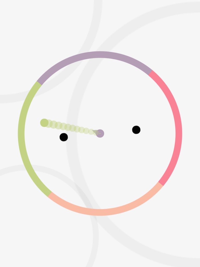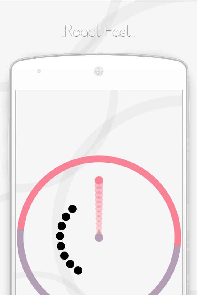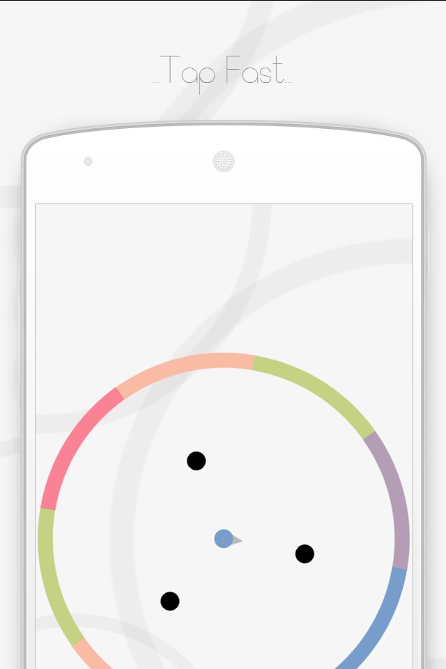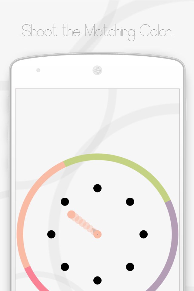 Colorim is all about a rim sliced into colors. There is an arrow in the middle with a dot on it's tail. Simply tap the screen to throw that dot to where the arrow points. Do your best to shoot the matching color in the rim but beware of the black dots in between because you should avoid hitting them.