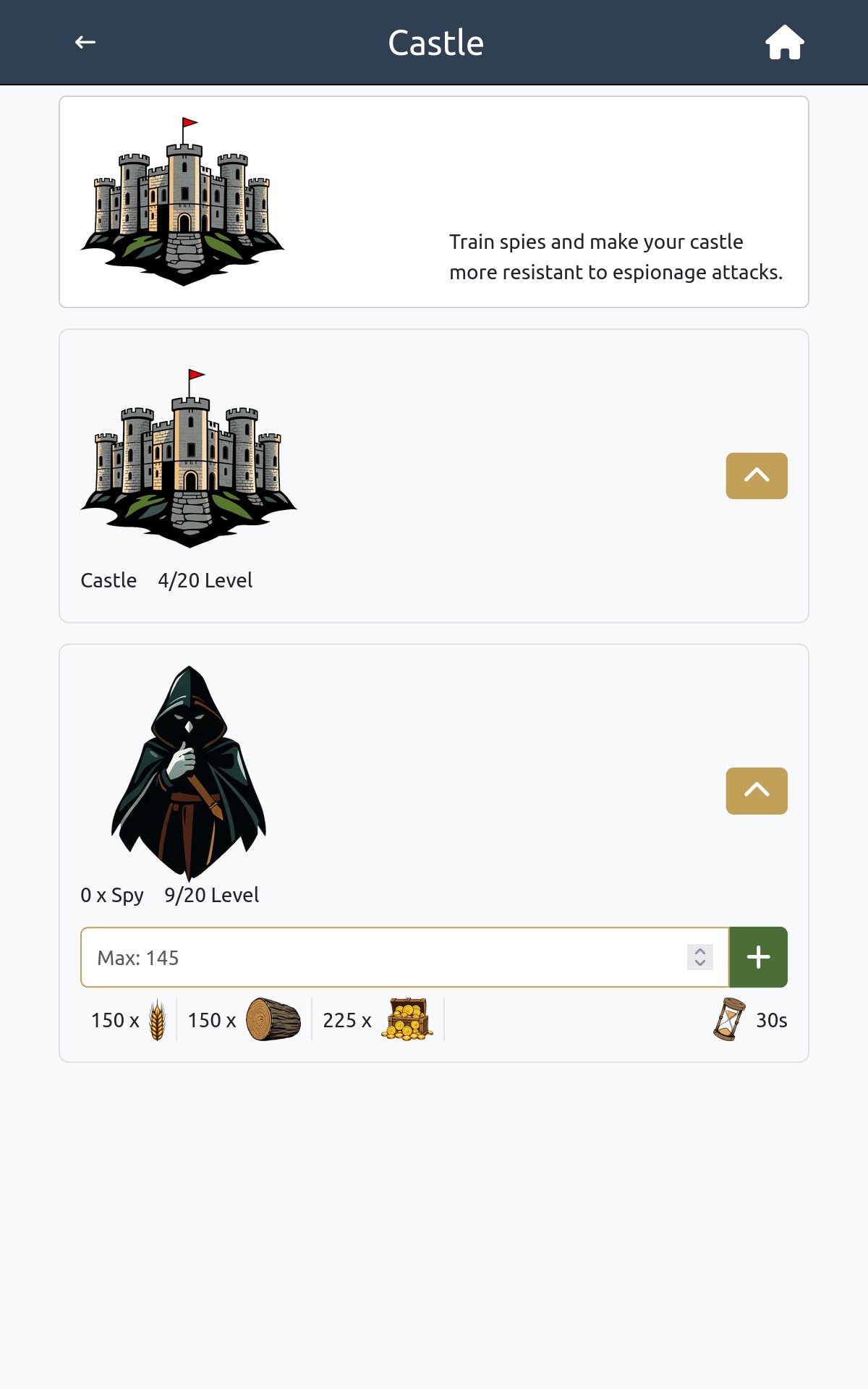 - Defense tower and castle stats shown in detail screen