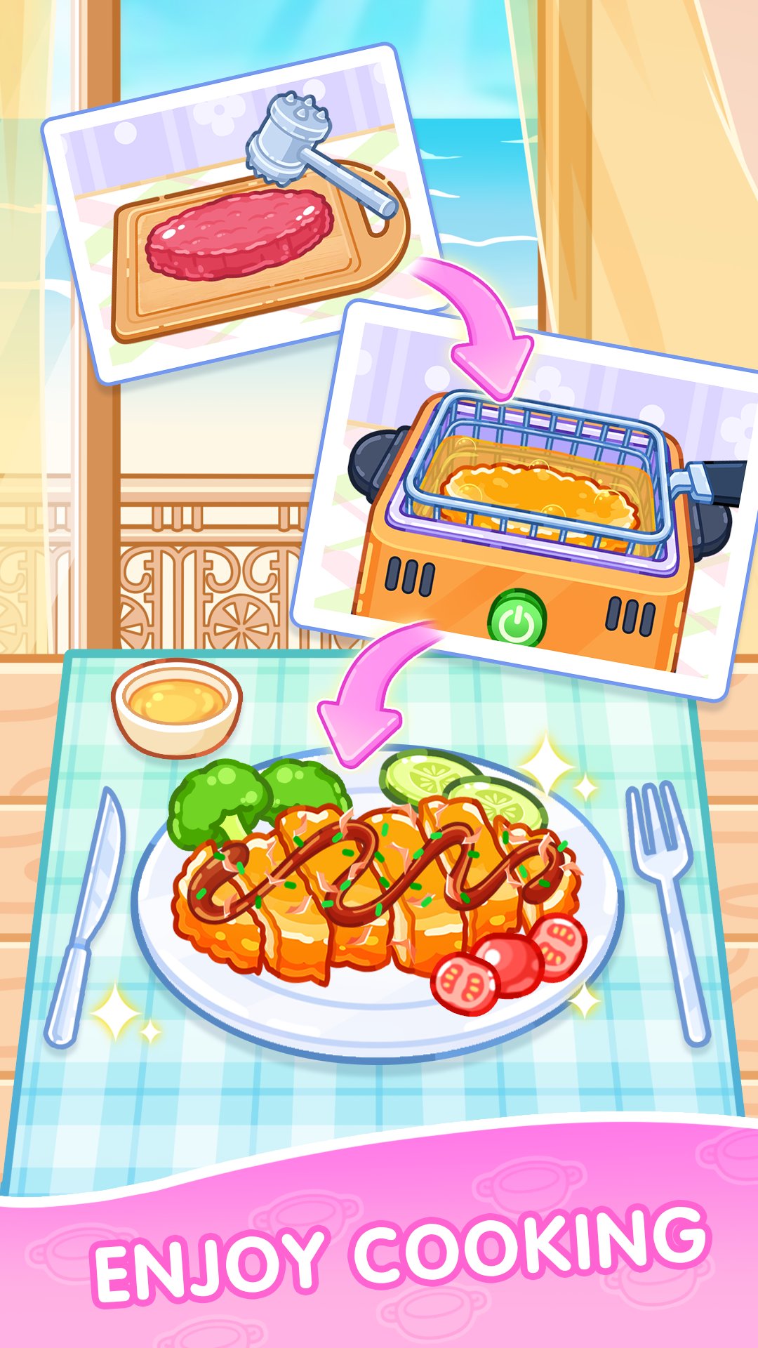 Take your time – the pace is all yours. Enjoy every step, unlock more recipes, and make everything from appetizers to desserts. It’s food making games at their finest!