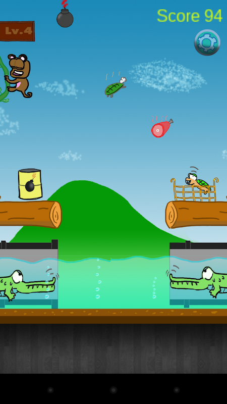 - 7 levels of obstacles, faster object falling by increase gravity, Left-Right log movable and make you hard to feeds crocodiles, Remove bomb to destroy bin, save a turtle to basket and more.