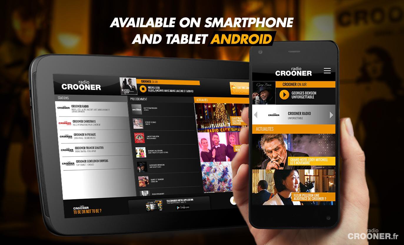 Through our Android app, you can listen to Crooner Radio live whenever and wherever you are! Designed to meet your expectations and blend with your lifestyle, Crooner is supported by French and international celebrities.