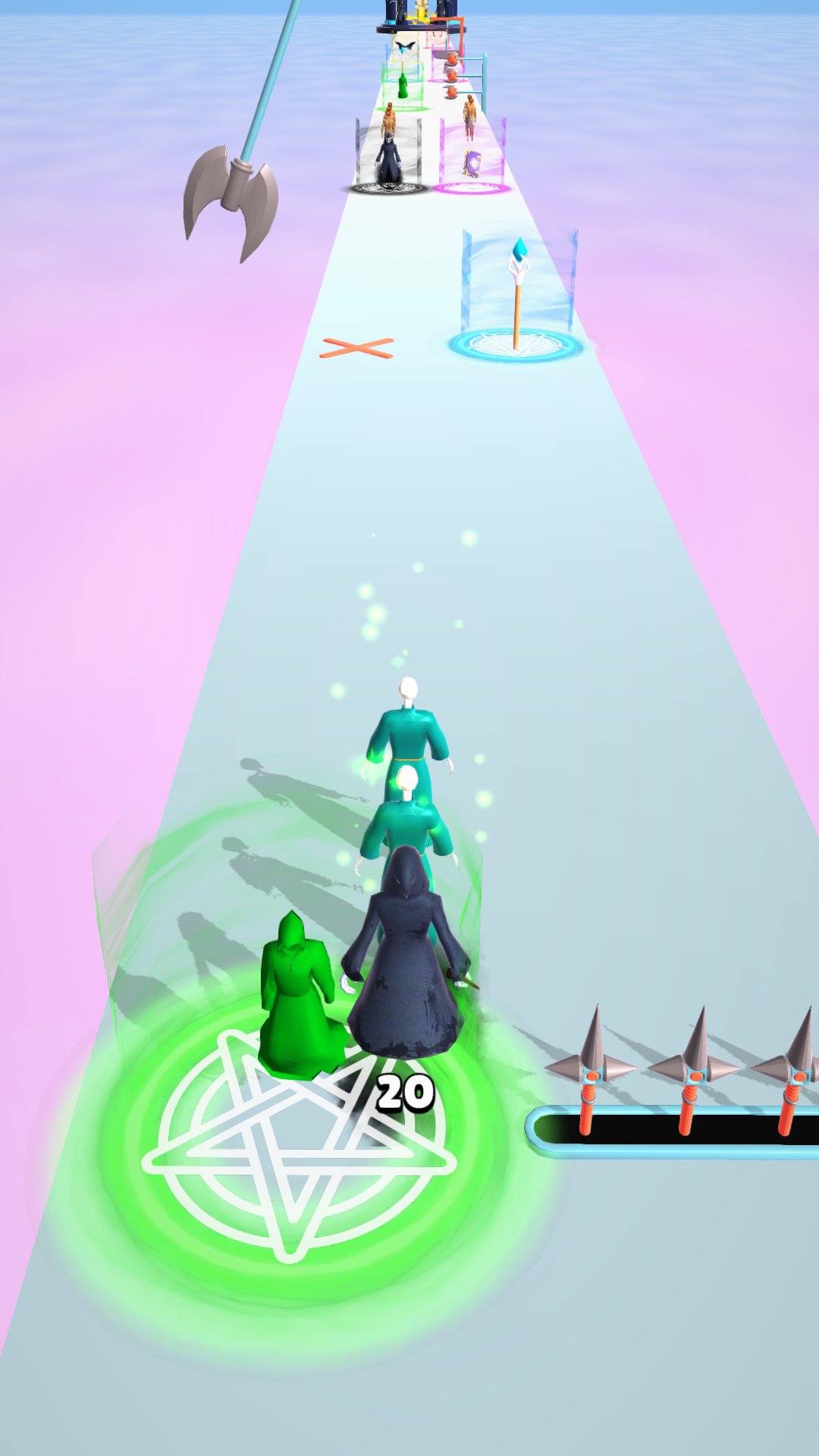 You start as a cultist and collect new members on the road to your cult. You should enhance them by passing through gates. Raise them, equip them with items and at the end sacrifice them at the altar to demons and summon different creatures from hell. You need to collect more members and upgrade them to summon stronger creatures.