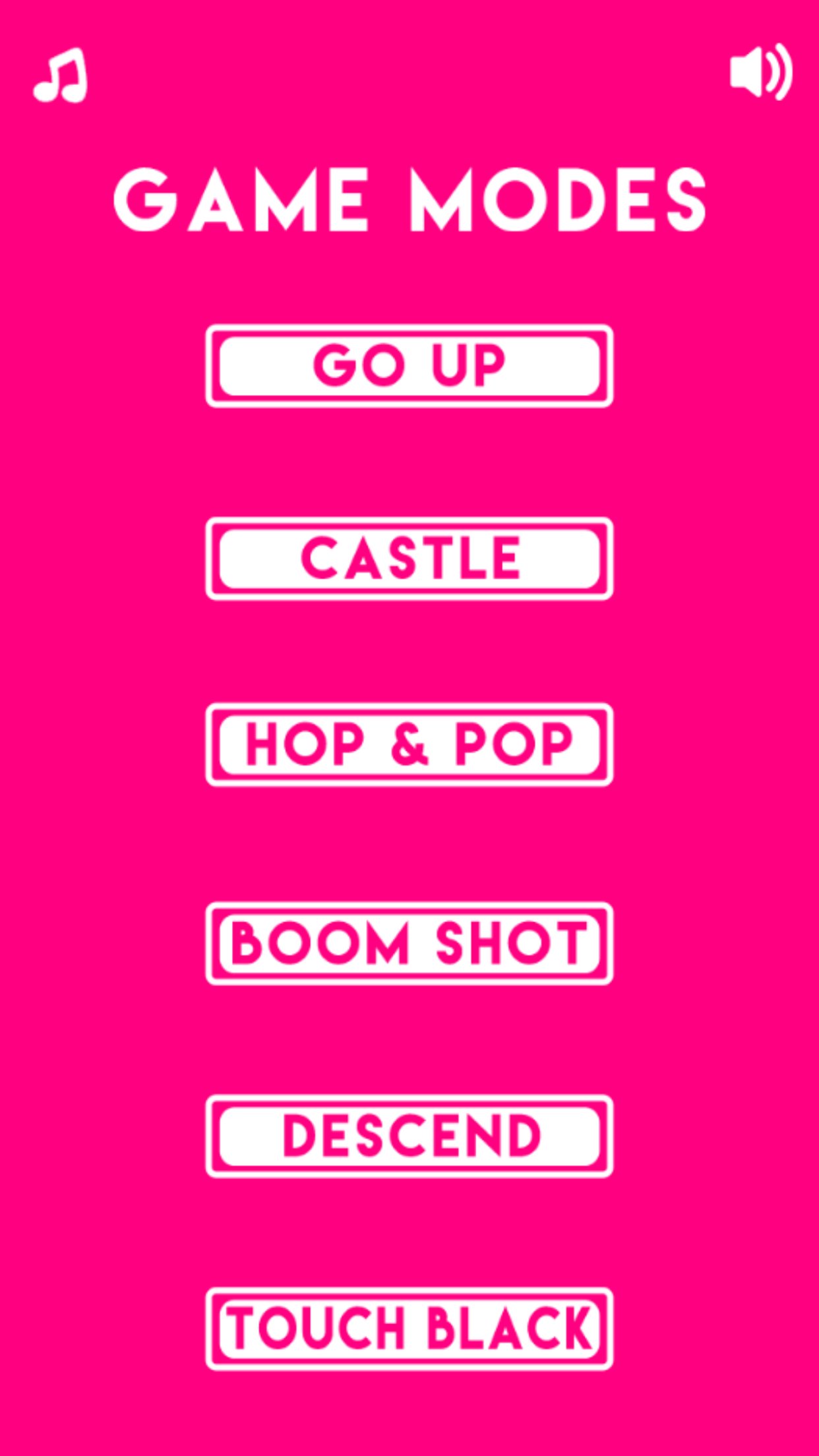 • Different modes are GO UP, CASTLE, HOP & POP, BOOM SHOT, DESCEND, TOUCH BLACK