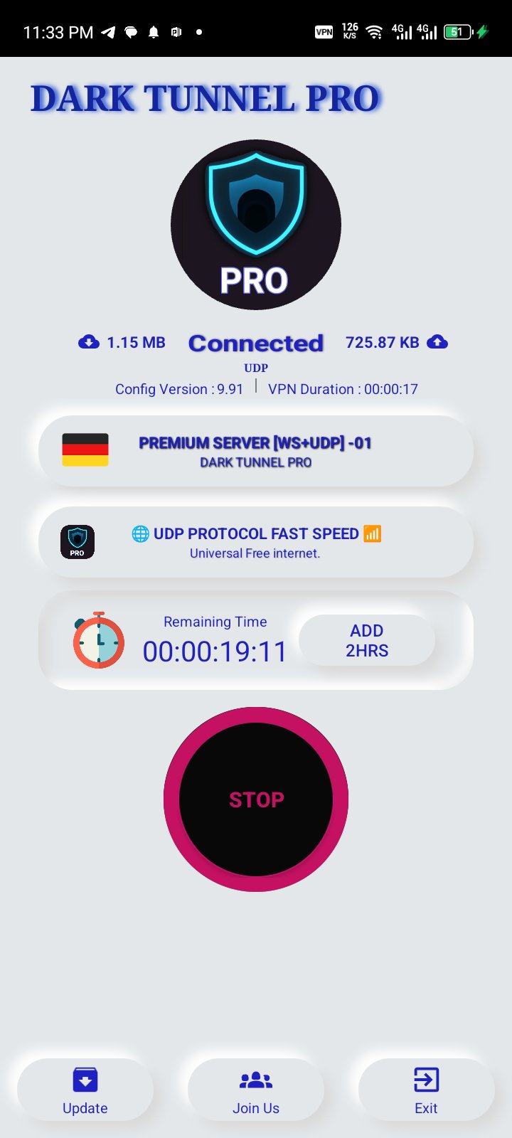 DARK TUNNEL PRO comes with a lots of tunneling protocols which are fast and reliable like;