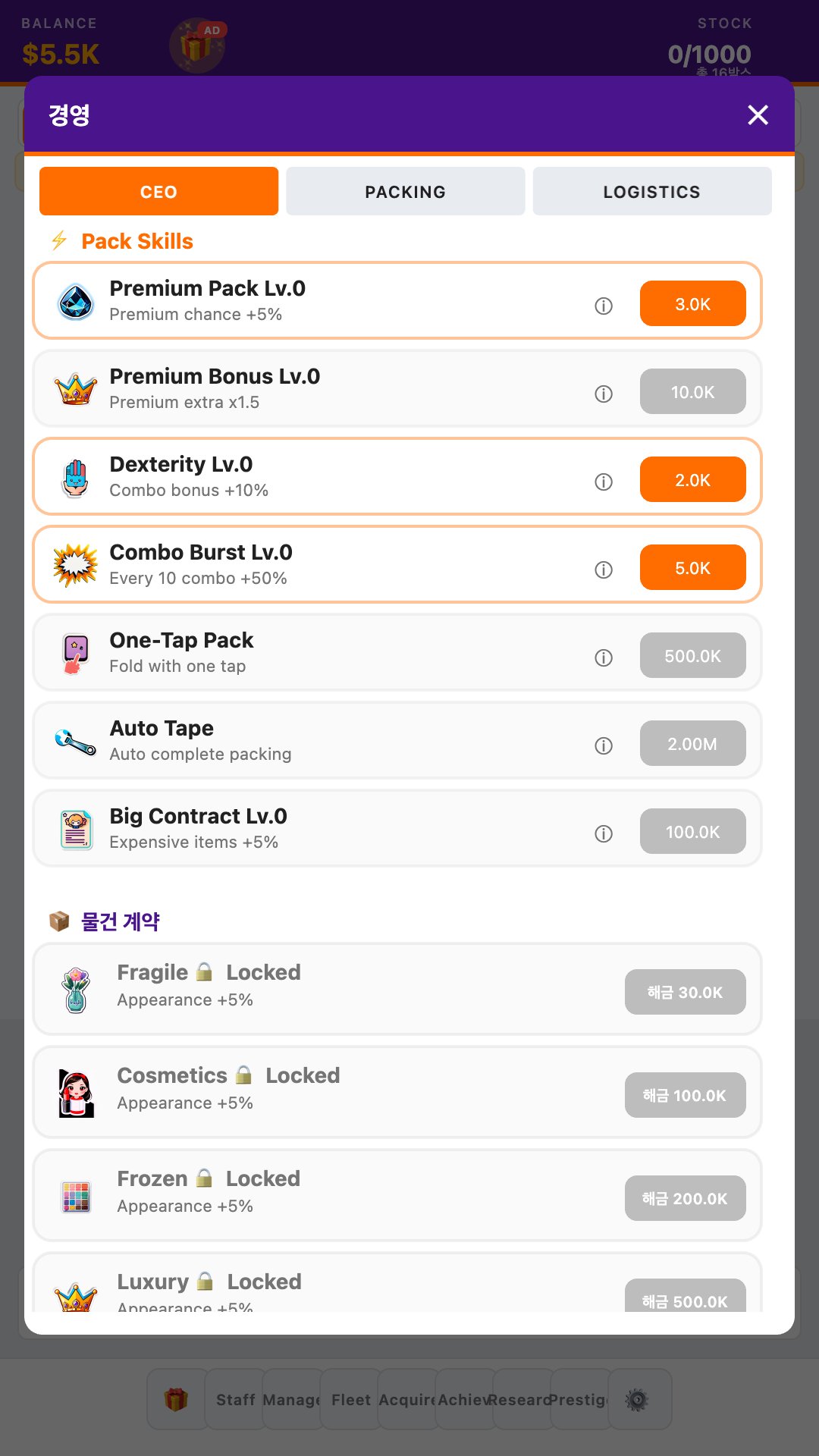Tap the box to fold and pack deliveries. Master the art of packing to earn more money per box. Build up combos for bonus earnings!