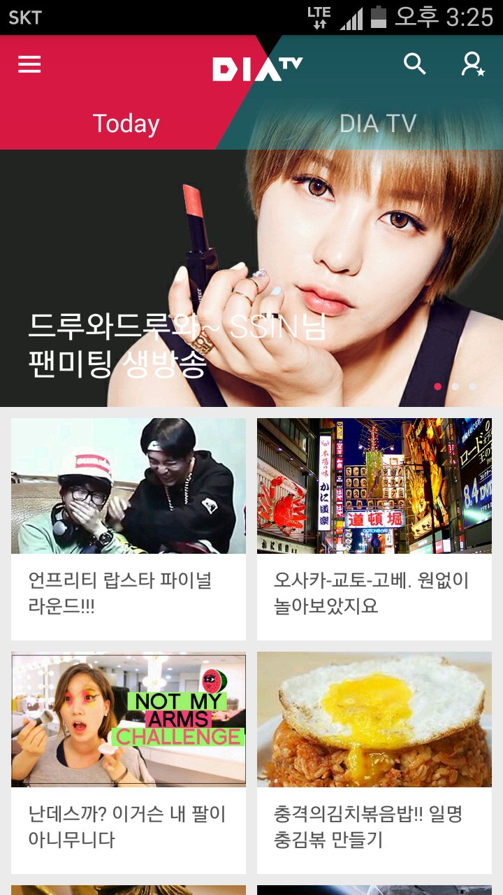 Specifically, you can watch informing and funny video clips made by creators who belong to DIA TV. Plus, you also can enjoy 24-hour broadcasting mobile TV.