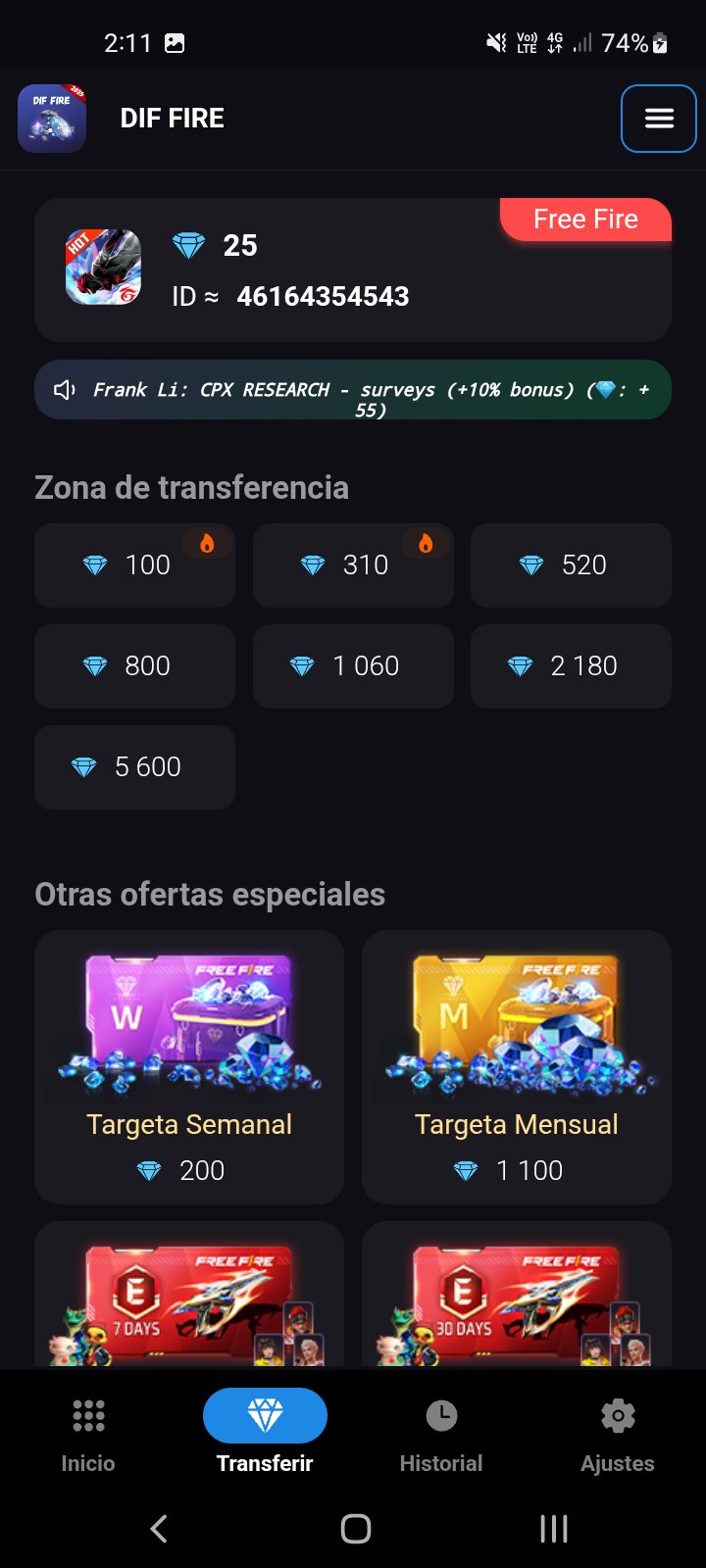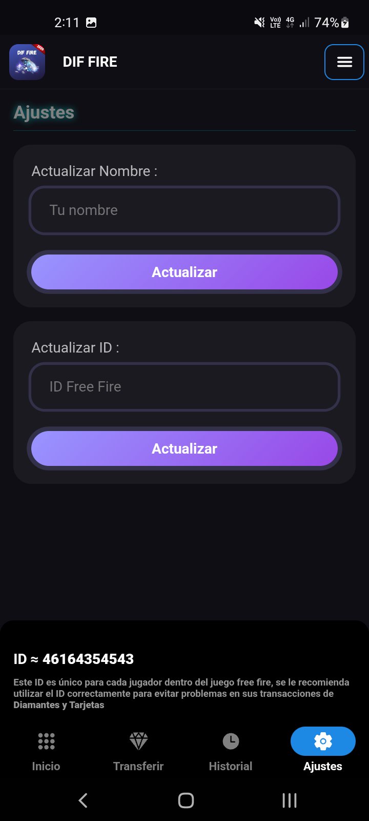 Earn diamonds for Free Fire with DIF FIRE! Our app lets you earn diamonds by completing simple tasks and redeem them directly to your Free Fire account. Have fun playing and get rewarded!