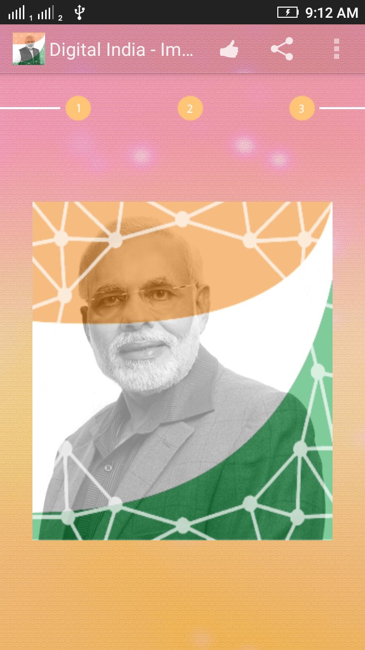 The Indian government's effort to connect rural communities to the internet and give people access to more services online. Digital India is an initiative of Government of India to integrate the government departments and the people of India. It aims at ensuring the government services are made available to citizens electronically by reducing paperwork. You will have daily updates of digital india initiative as well. On the Gandhi Jayanti make you profile pic of digital india started by Narendra Modi. Here is the app for you. Install it and make attractive and patriotic profile picture images. Don't wait and download the app in the blink of an eye!!