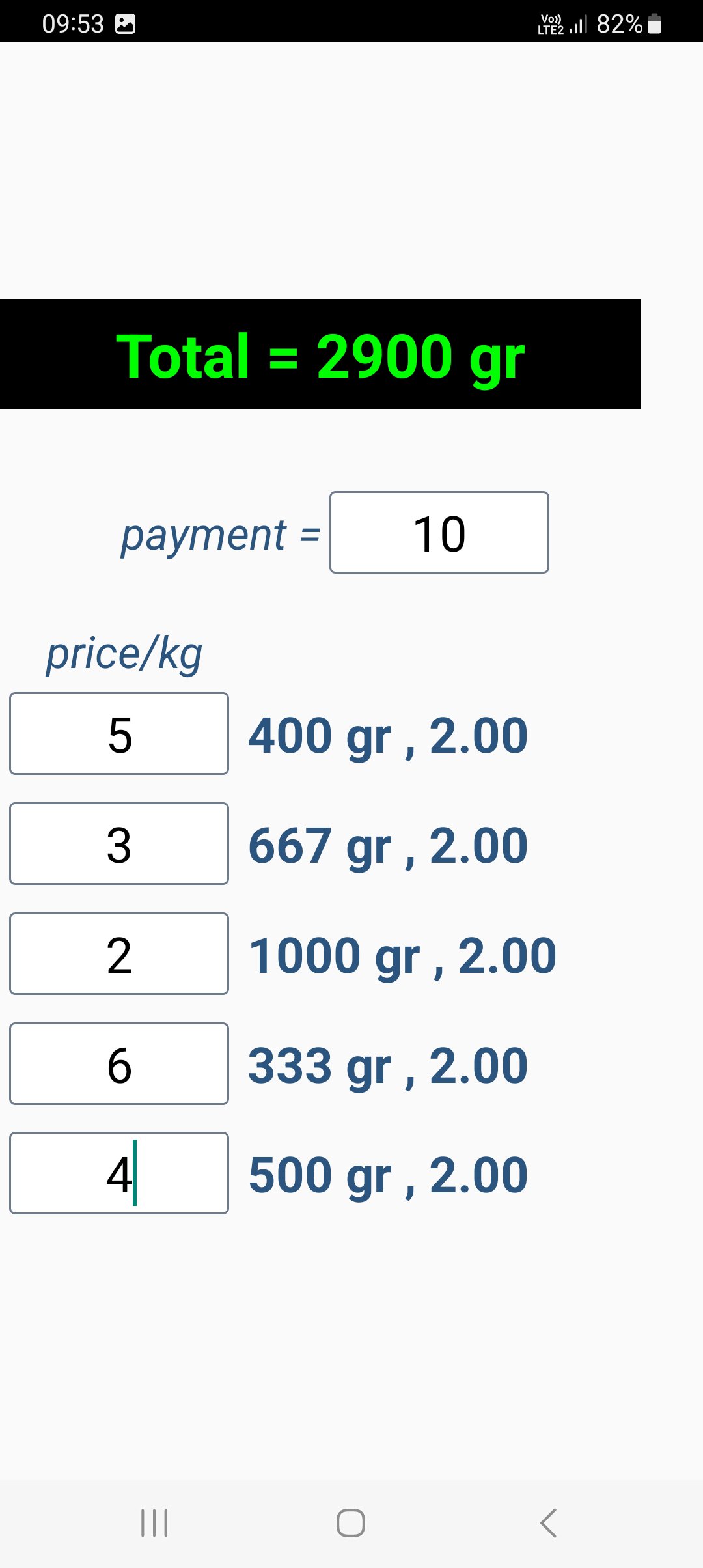 According to the payment made, it calculates the product amount.
