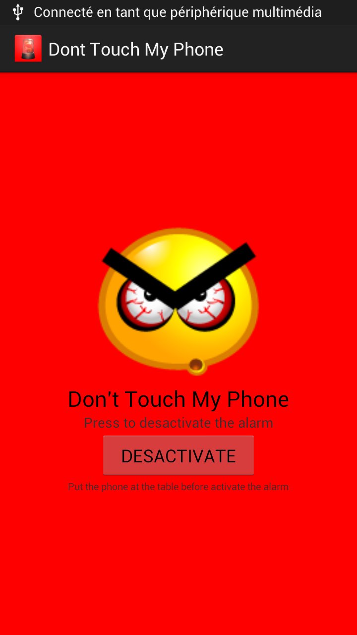 this Alarm keeps your phone save from curious people and burglars. Once you activate the alarm, no one could touch it, because the alarm will be triggered if any one try to take the phone.