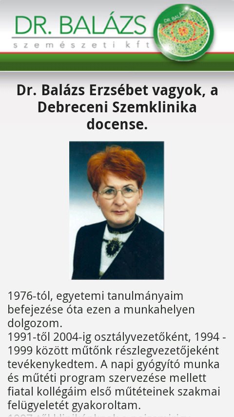 Dr. Balázs Erzsébet a Debreceni Szemklinika docense vagyok. 37 éves szakmai és oktatói tapasztalatommal várom Önöket szakrendeléseimen és magánrendeléseimen.
