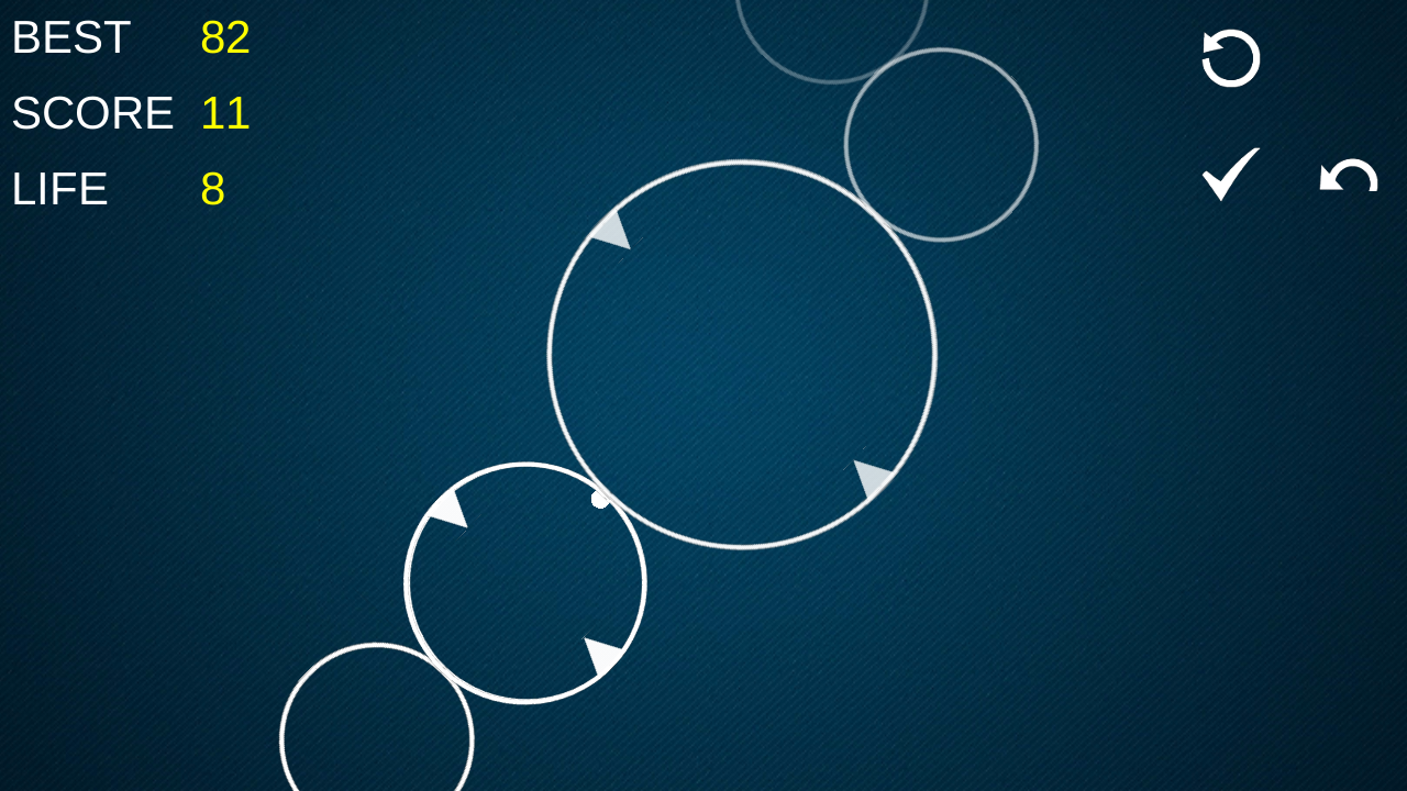 If you touch to screen when the ball is on the intersection point of two circles, ball will go inside of the next circle.