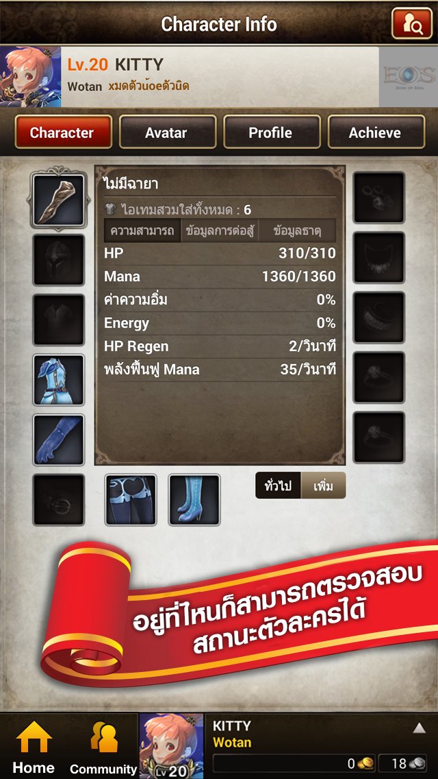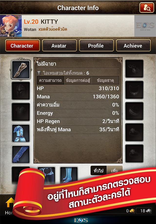 • อยู่ที่ไหนก็สามารถตรวจสอบสถานะตัวละครได้