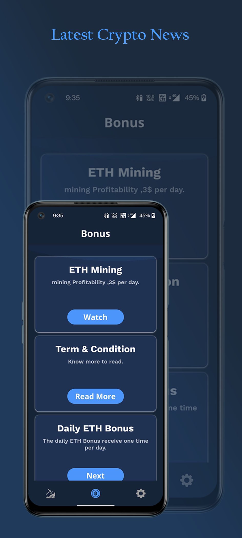 We developed free and fastest cryptocurrency app to mine Ethereum with advance digital technology. There are many ways to earn money in the cryptocurrency world. Trading crypto is the one way, but another is mining the crypto coin currency with phone through blockchain technology. We are providing referral bonus and opportunity to make your eth network with our app. You can create social network with friends to increase mining rate for earning ethereum.