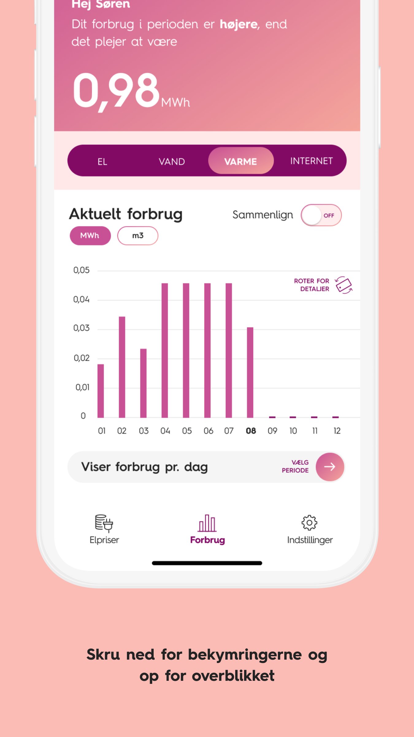 EWII is the app that gives you energy without too much excitement. Here you get an overview of your electricity consumption and, not least, you get the electricity prices. And no problem with you having to bring out the calculator or the ball frame yourself. No, no, in the app we show you the electricity prices 'all inclusive' - This means that you don't have to mess around with adding tariffs and taxes on top of the pure electricity price - you get the full price in the app. That's easy, isn't it?