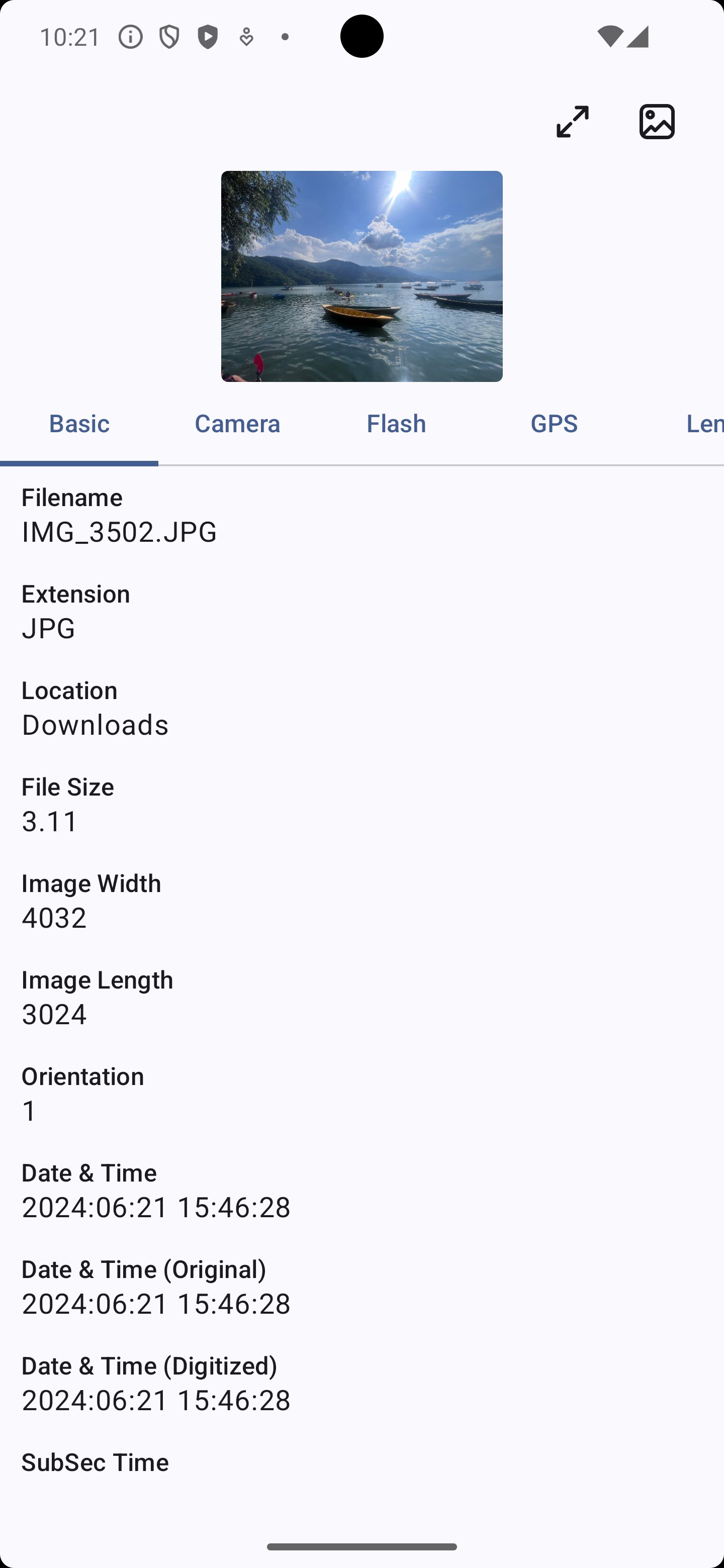🧾 Organized Sections — Basic, Camera, Lens, GPS, Flash, Thumbnail & Other