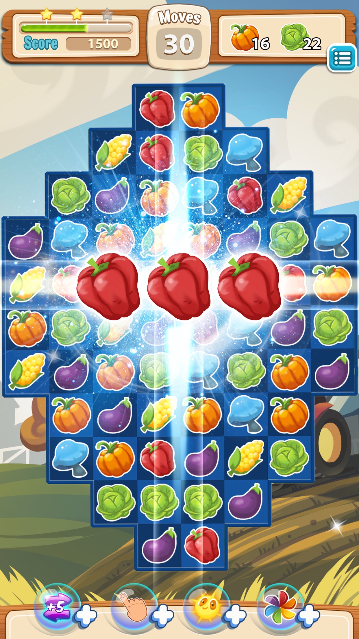 Match 5 crops in an L or T form to get a bomb that will explode surrounding items.